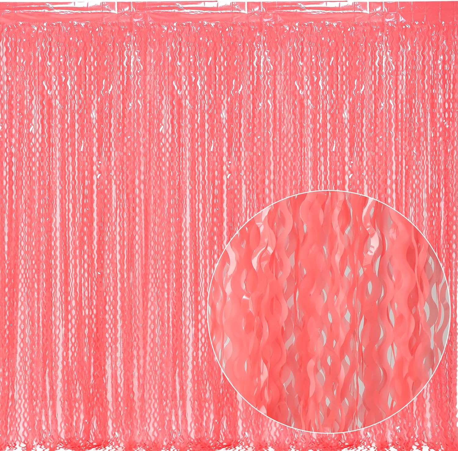 - 【LATEST Shiny Surface +Wavy Shape Tinsel Backdrop】The watermelon red foil curtain backdrop is made of aluminium foil with shiny surface +wavy shape, good for adding sparkle as decorations for parties