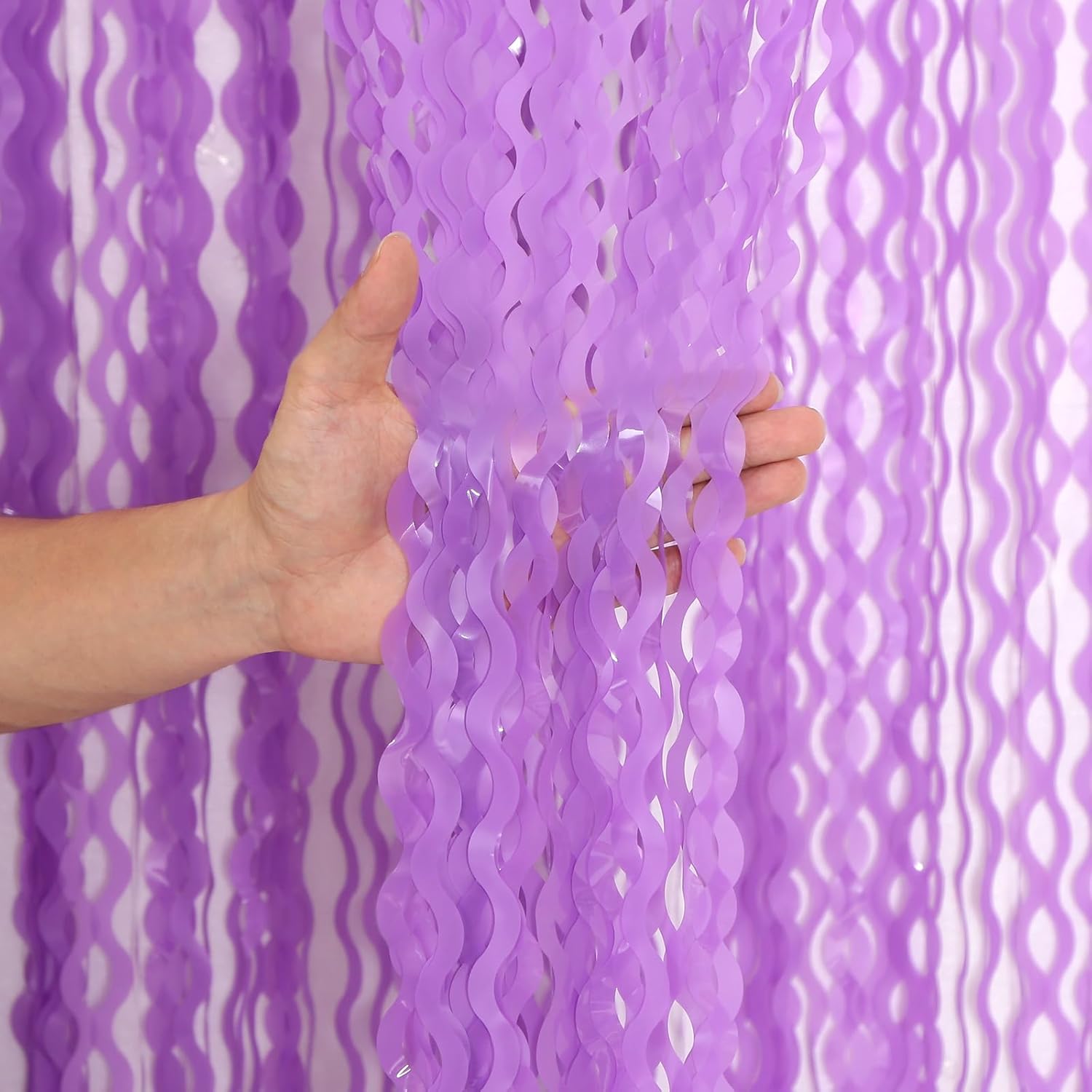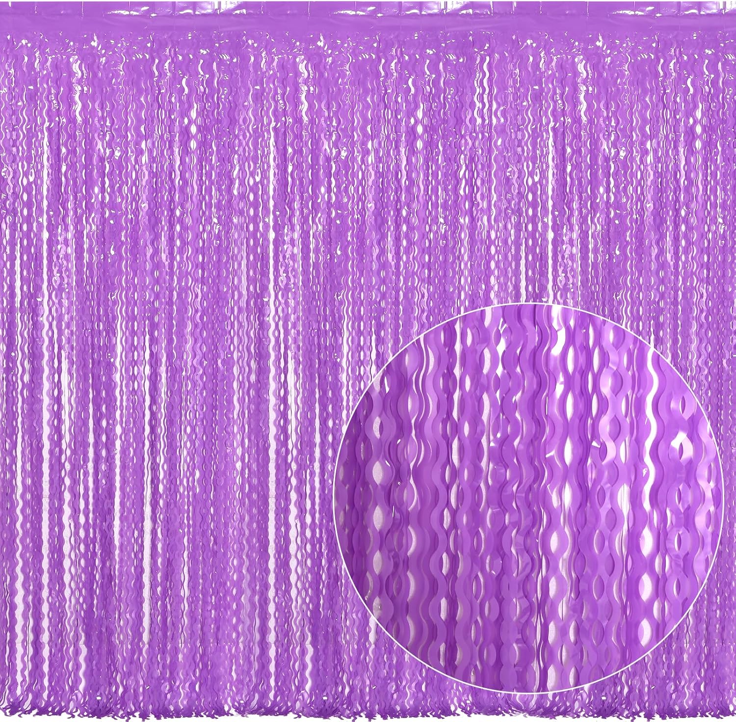 - 【LATEST Shiny Surface +Wavy Shape Tinsel Backdrop】The purple streamer backdrop is made of aluminium foil with shiny surface +wavy shape, good for adding sparkle as decorations for parties