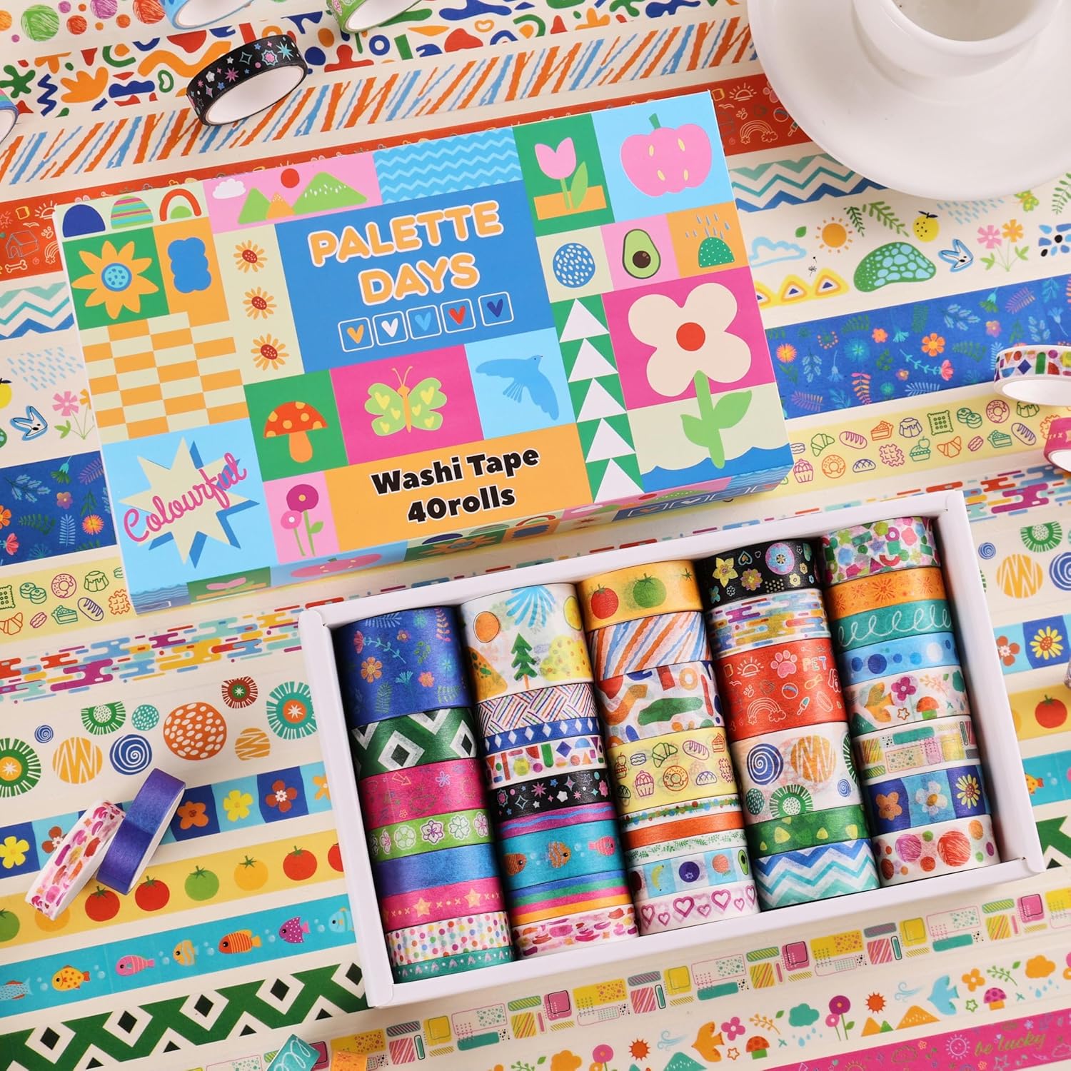 - ✨GREAT GIFT: We pack these colorful "Palette Days" washi tapes in a colorful box that can be used as a gift for friends, classmates, your daughter, junk diary lovers. It's a box full of creative fun.