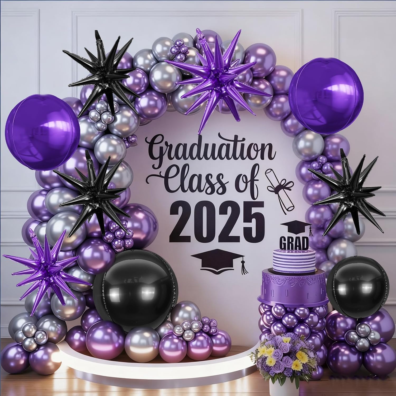 - 【Package】The package includes 3pcs 22Inch 4D ball foil balloons(purple x 1,black x 2),3pcs 22Inch star foil balloons(purple x 2,black x 1),and ribbon.These huge balloons can help you decorate your party better.