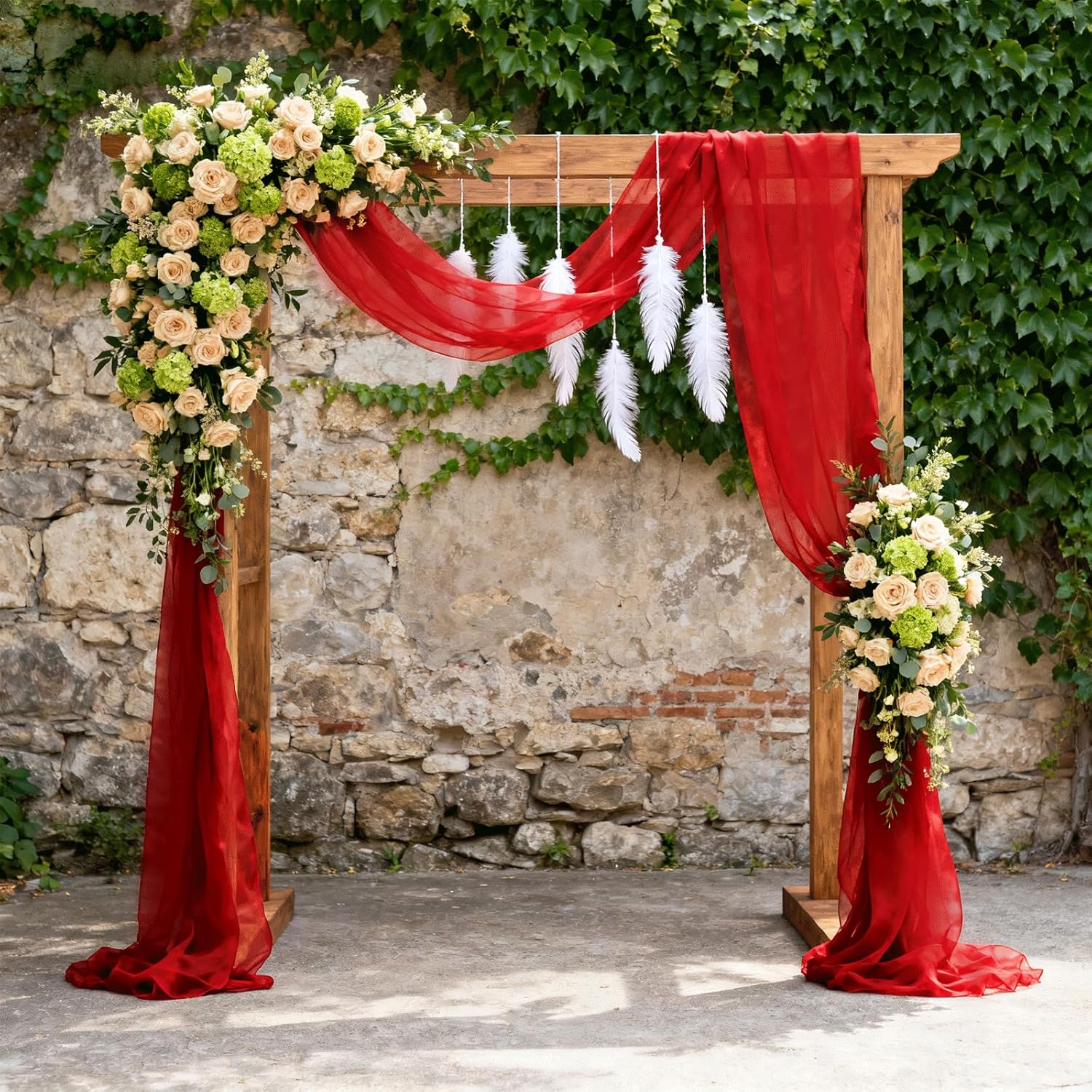Wedding Arch Draping Fabric 29" x 18 FT Red Sheer Chiffon Outdoor Curtain Drapes for Wedding Birthday Party Ceremony Decor(1 Panel, Red)