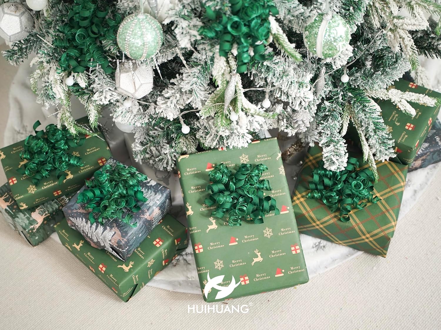 HUIHUANG Green Christmas Bows for Gift Wrapping Curly Gift Bow 5 inch x 8 Counts Forest Green Self-Adhesive Xmas Bows for Presents, Paper Bag, Party Favors, Wrapping Accessories