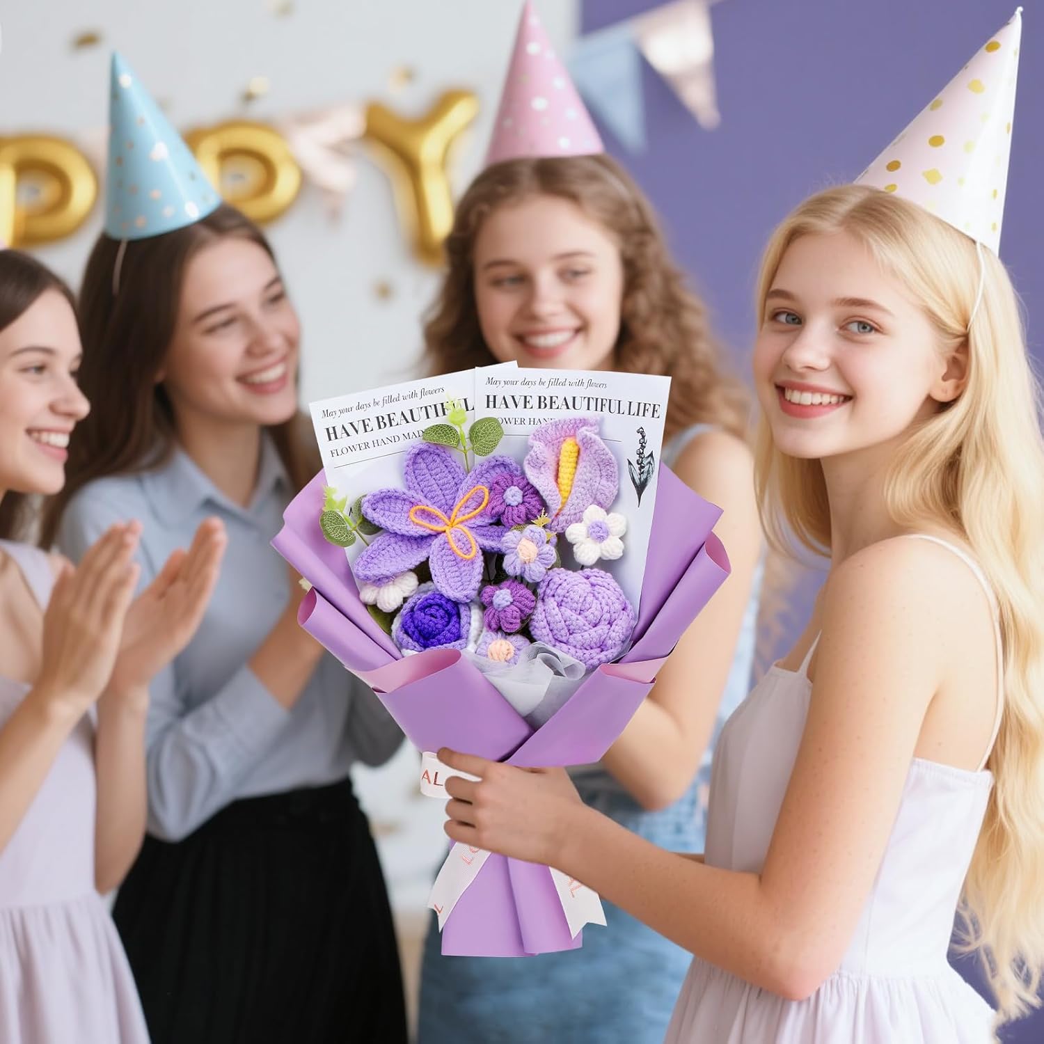 - High-Quality Materials: Each crochet flower is carefully crocheted with high-quality milk cotton yarn, which is soft and skin-friendly, with a delicate and gentle touch. Paired with exquisite high-end packaging gift bags, from the details to the overall design, it highlights the craftsmanship and style, giving every companionship and blessing a gentle and lasting sense of ritual.