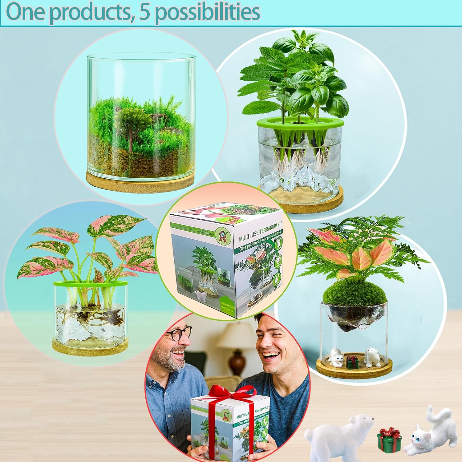 - PLANT TERRARIUM KIT: Create stunning indoor ecosystems with a plant terrarium jar, including options like a glass terrarium, or mini terrarium. these sets allow you to grow houseplants, water-loving species like water plants fern, no matter grow them in the jar, or have it upside down to grow it on top even with small bonsai tree