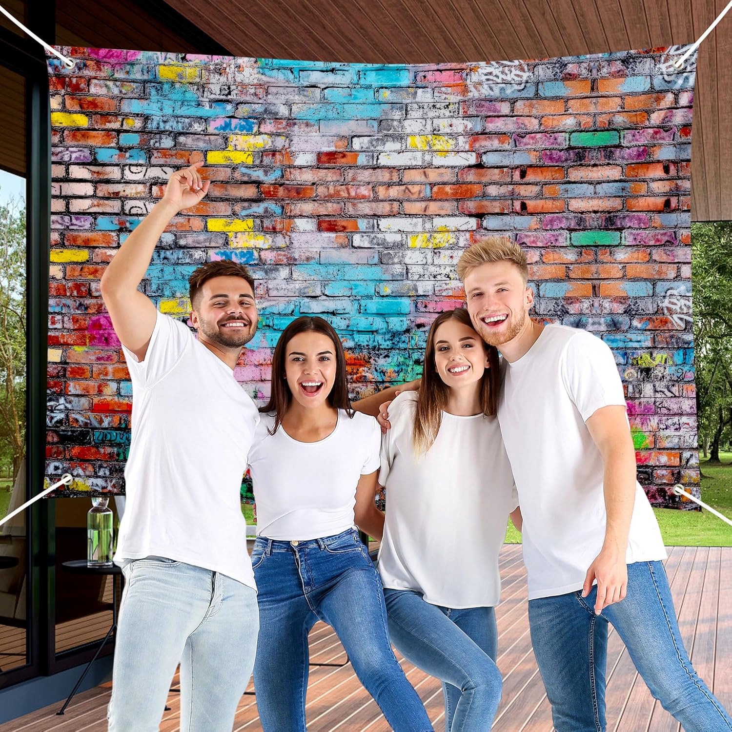 Colorful Graffiti Brick Wall Backdrop Banner - Abstract Street Art Photography Background for Hip Hop Party, 80s 90s Disco, Birthday Wedding Decor, Studio Props & Booth Supplies 98x65 Inch