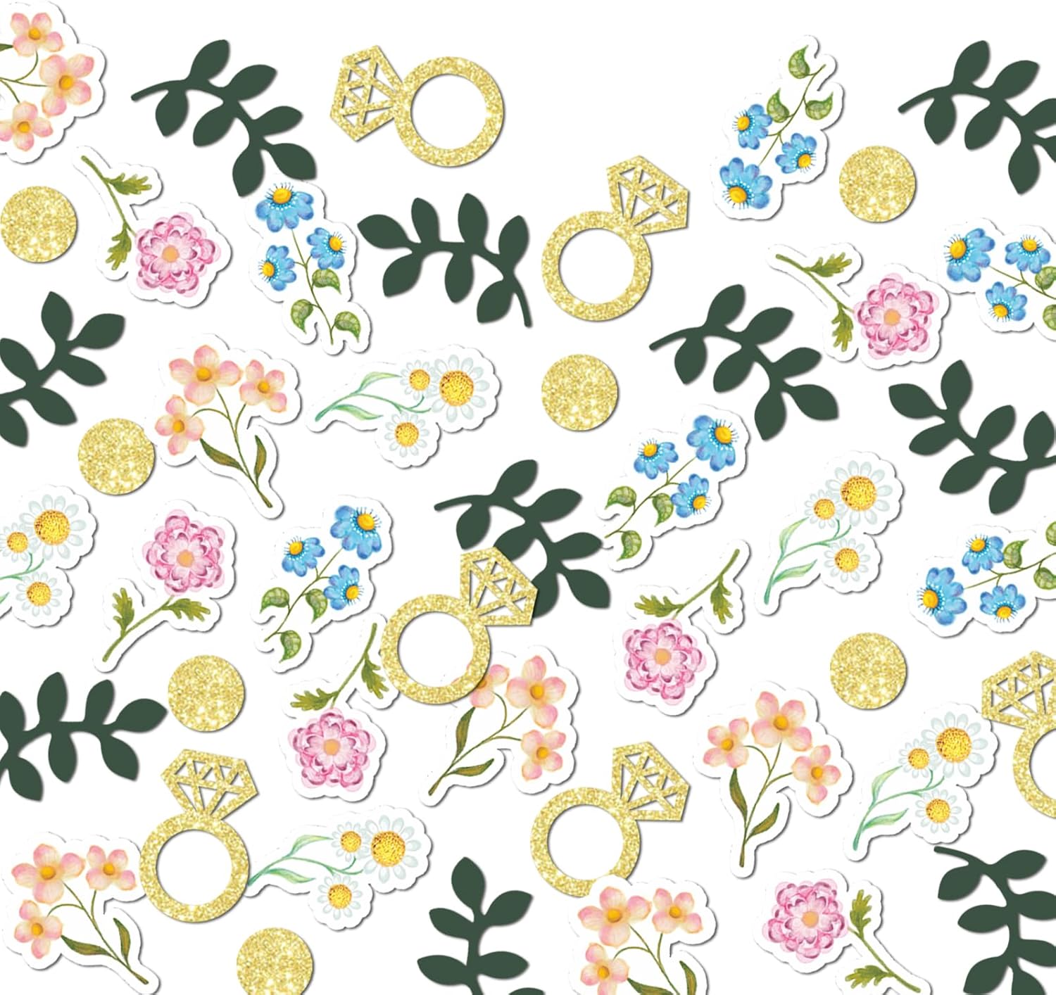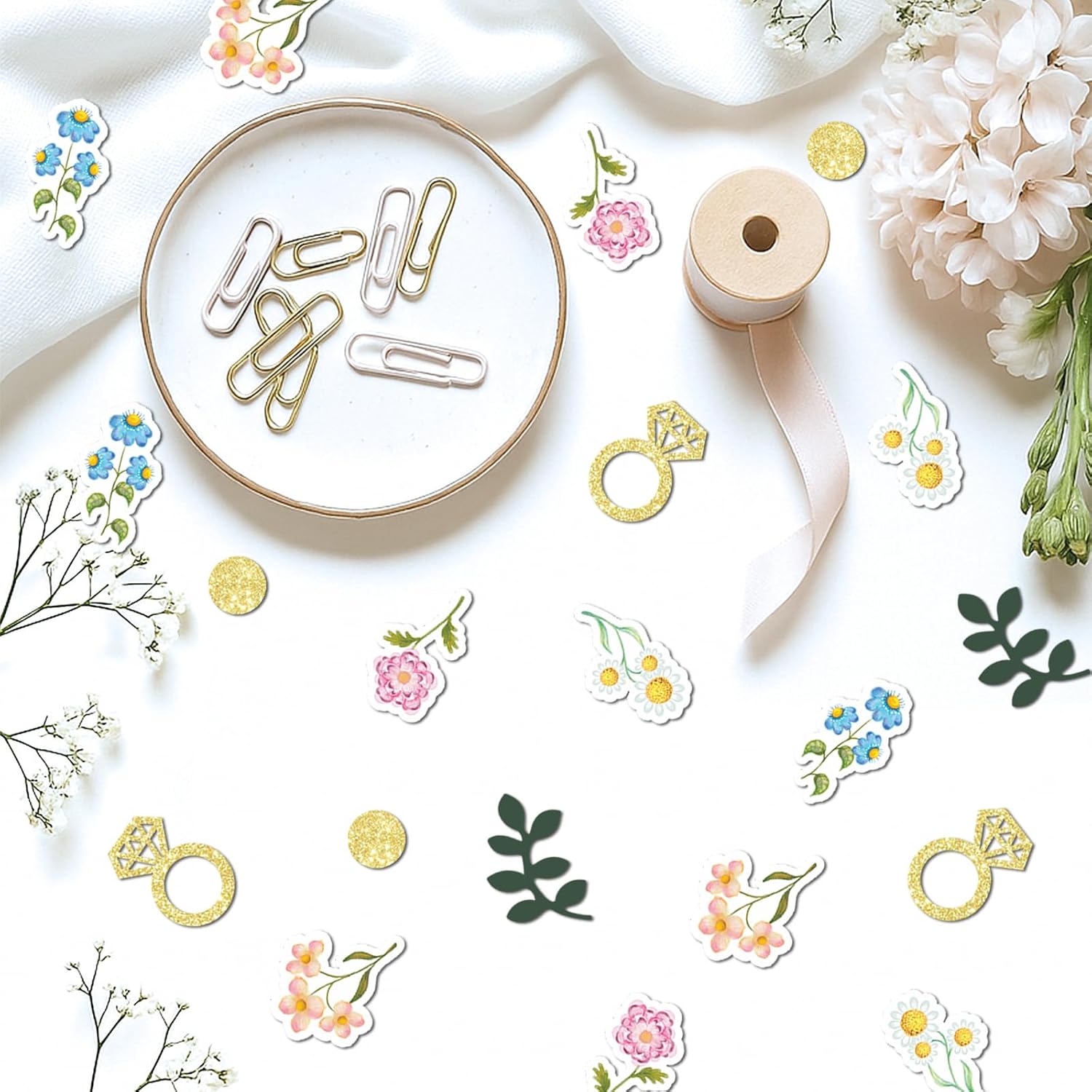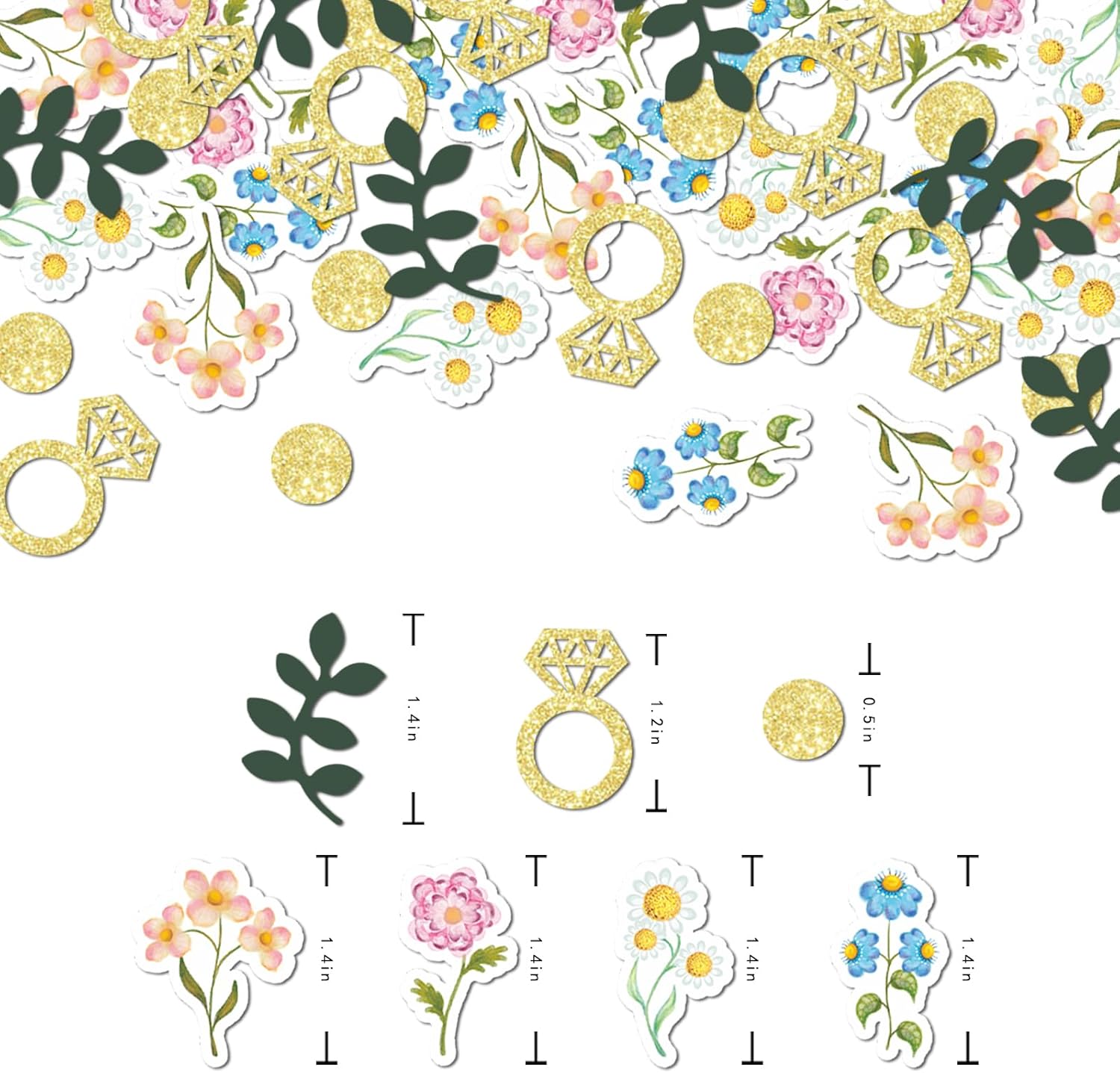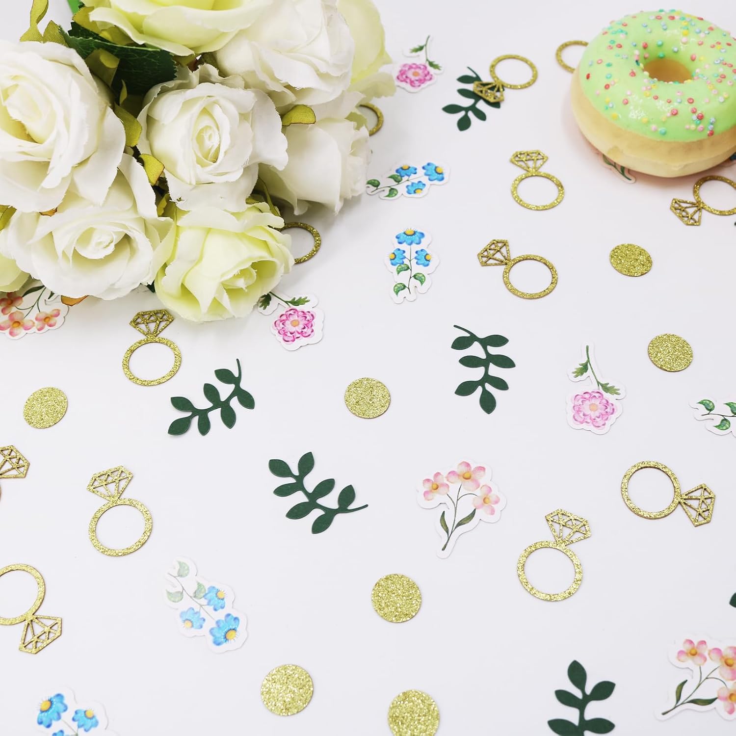 - Great Addition to Your Bridal Shower Party: The gold diamond ring and wildflower bride confetti are very eye-catching and a perfect addition to your wedding party,engagement party,bridal shower, bachelorette party, hen night party, Valentine's Day surprise,couple’s birthday party decor or any romantic love related anniversary party celebration occasion.