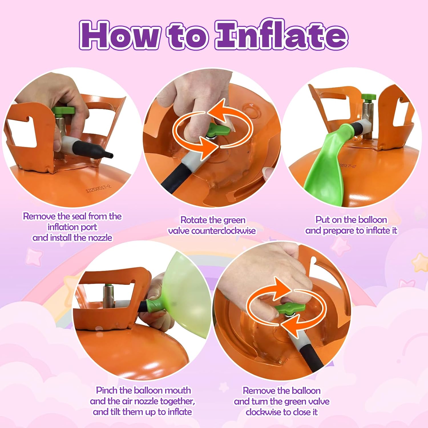 - Helium Tank:1 Tank,99.99% Pure Helium (Non-flammable, Non-toxic - Safe for Indoor Use),12.96cu.ft of helium per tank can fill 50 Standard 9-inch Latex Balloons** (Balloons provided are 12-inch size - inflate to 9" for best results).