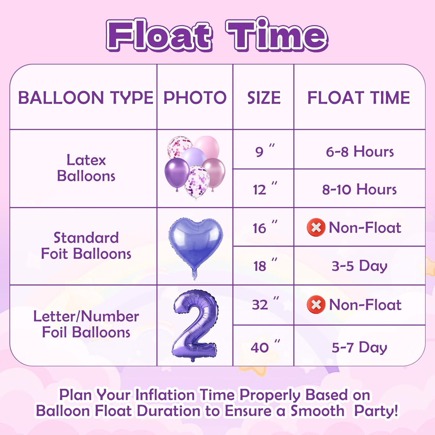 - Pink&Purple Latex Balloons Set: 50 Pieces,12-inch (Uninflated - Inflate to 9 inches),2.8g per balloon,6 metallic purple balloons, 6 metallic rose balloons, 13 maca pink balloons, 13 maca purple balloons, 6 rose confetti balloons, 6 purple confetti balloons.