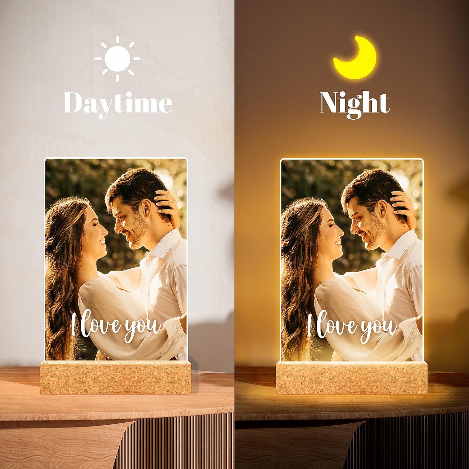 Custom Picture Frames with Photo, Personalized Photo Frame with Night Light, Customized Picture Frame, Personalized Anniversary Couple Gifts for Women Men Her Him Boyfriend Girlfriend