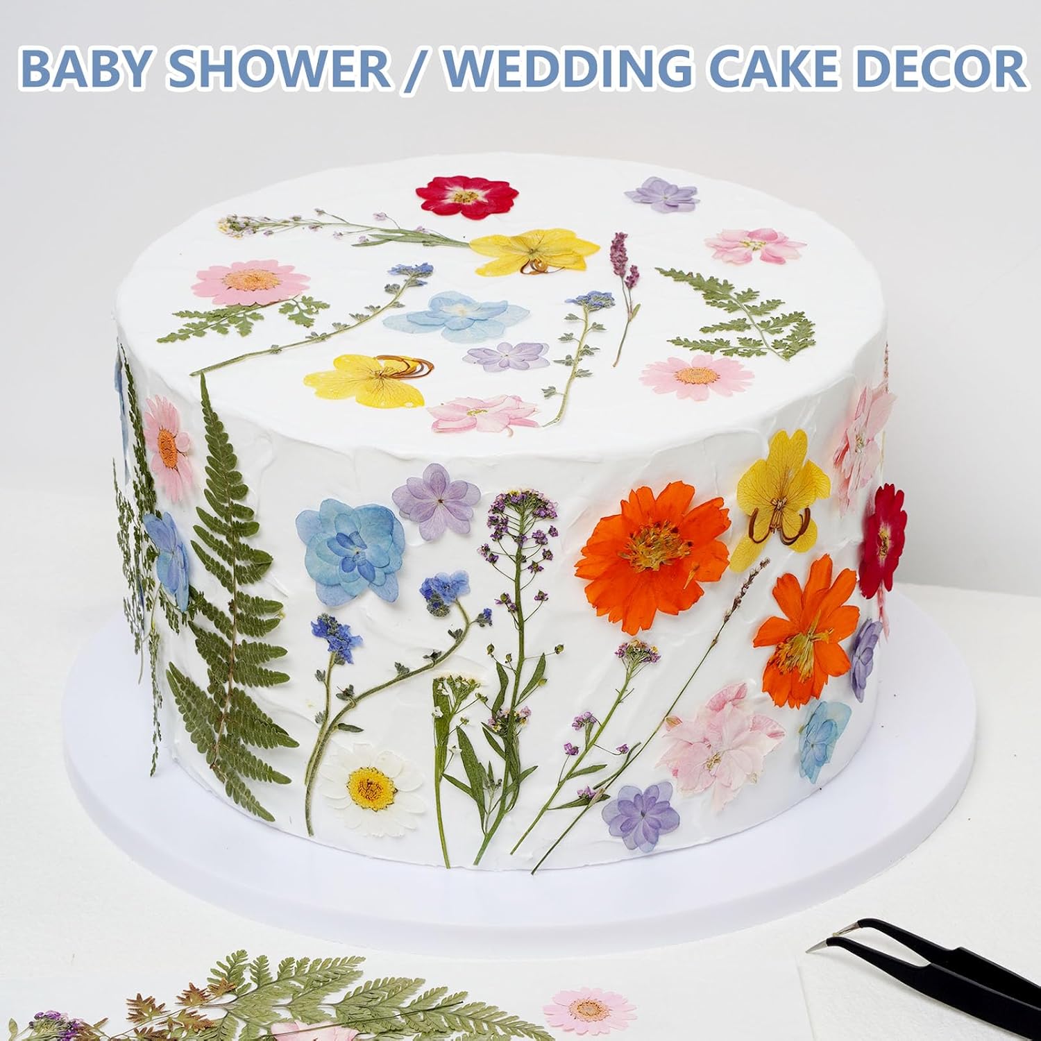 13Types 48Pcs Real Dried Pressed Flowers Leaf Plant Herbarium for Crafts Resin Jewelry Making, Baby in Bloom Baby Shower Floral Cake Decorations - Wildflowers
