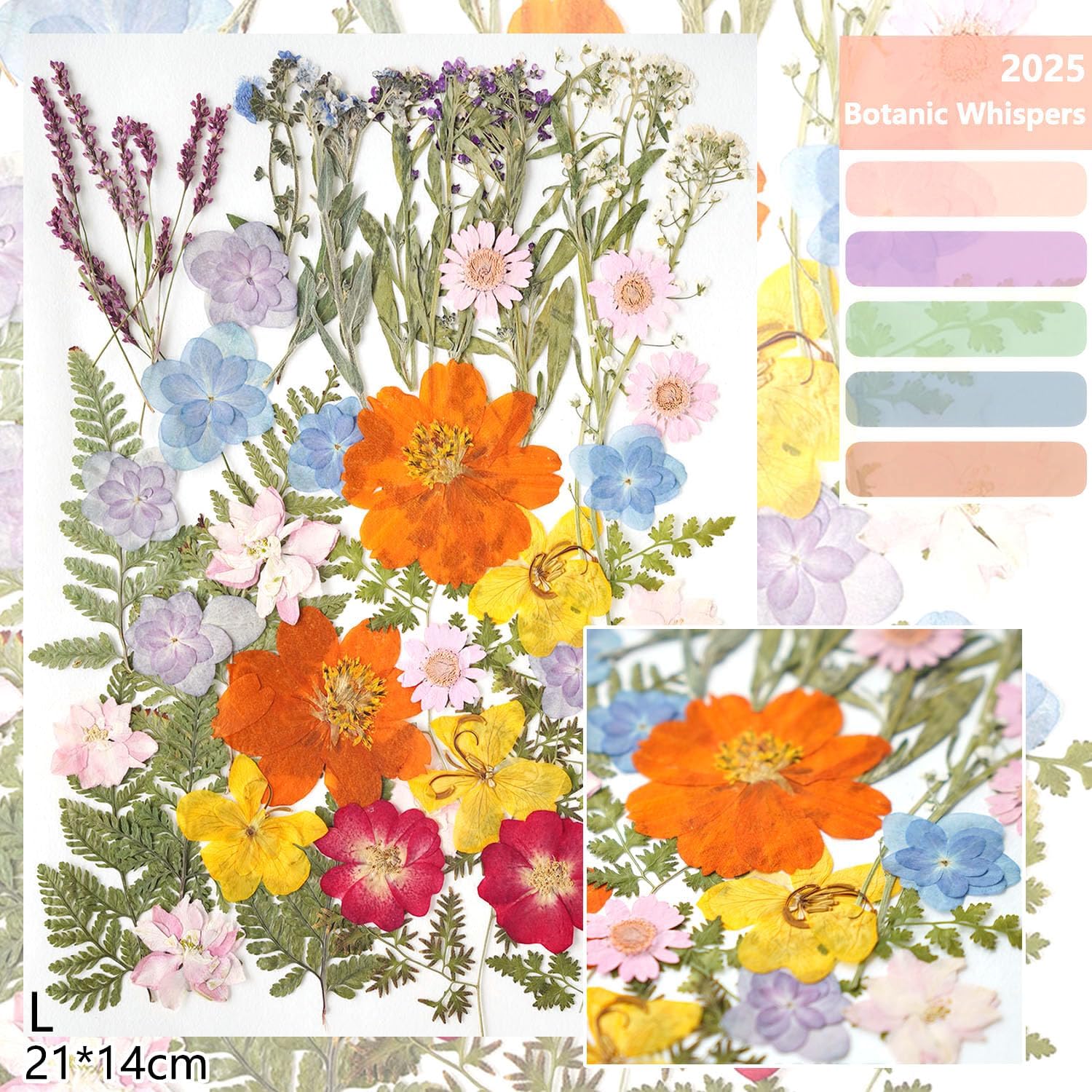 - 🌼Made of natural flowers and leaves, thus each piece varies slightly in size and shape.Each package contains 10+ types of plant materials. total about 48 pcs.