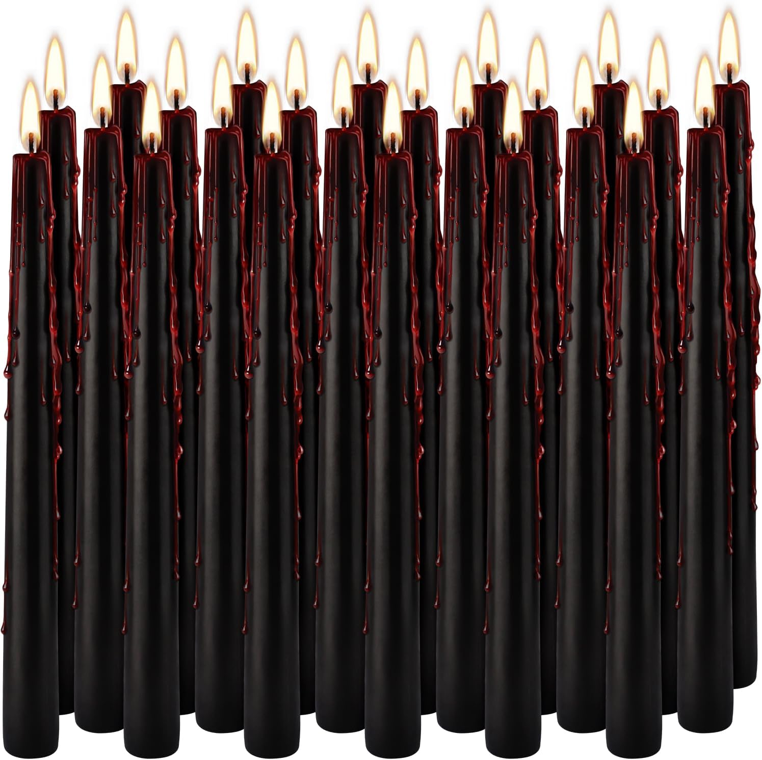 - Spooky "Bleeding" Effect These black taper candles feature a unique design that βbleedsβ red wax when lit, creating a chilling vampire-inspired ambianceβperfect for Halloween parties, gothic themes, or mysterious rituals.