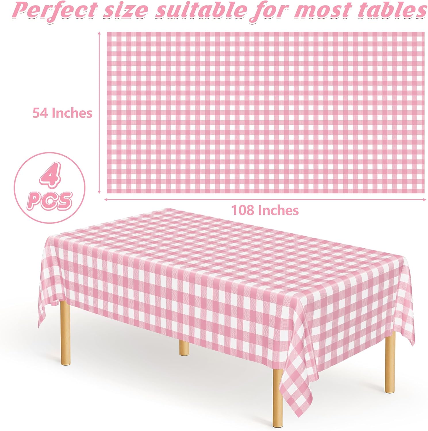 - Vibrant Design: Our table cloth rectangle table set includes 4 pieces featuring a lively pink and white checkered pattern. Perfect for enhancing both indoor and outdoor events, these tablecloths add a cheerful touch to any gathering, ensuring your occasion is unforgettable