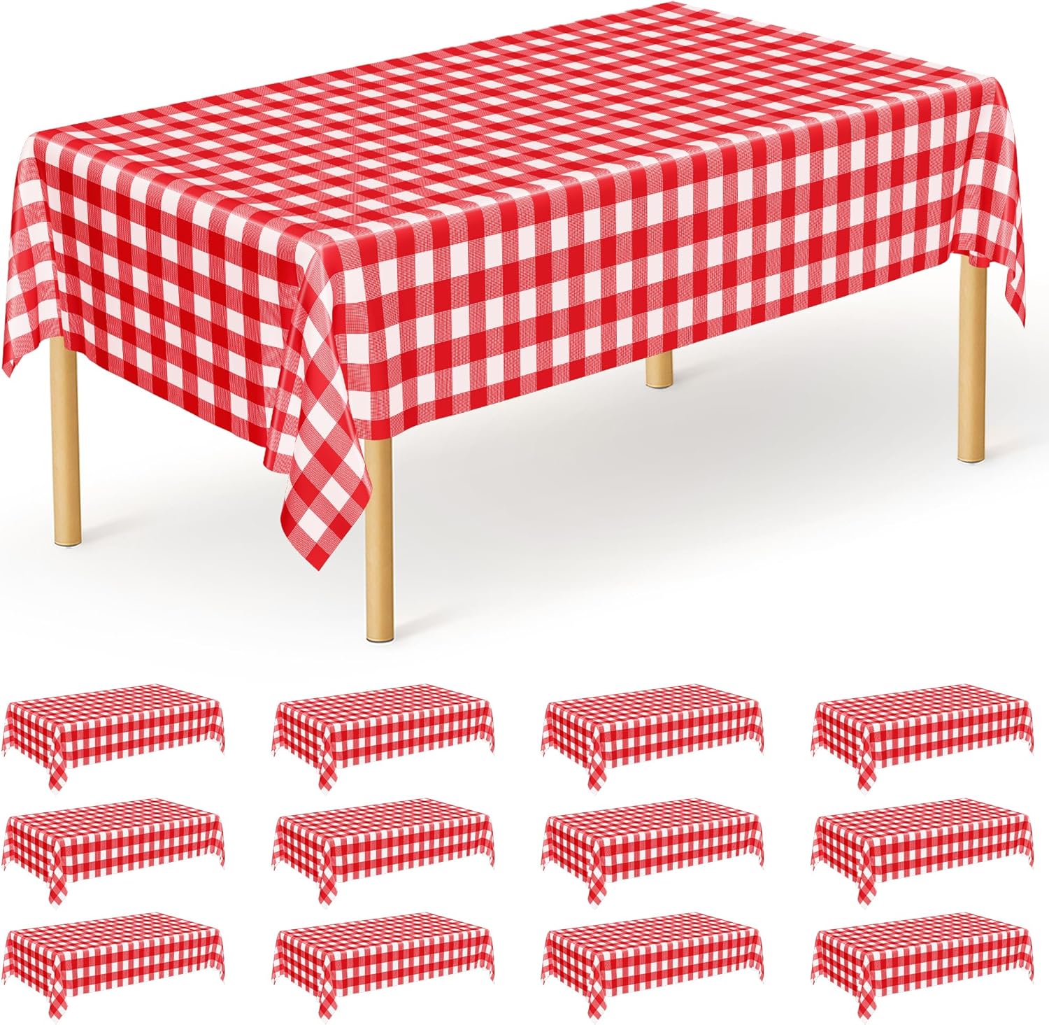- What's Inside: Our disposable table cover comes in a pack of 12, featuring vibrant red and white checkered patterns. Perfect for both indoor and outdoor gatherings, these tablecloths create an inviting atmosphere that ensures your event is memorable