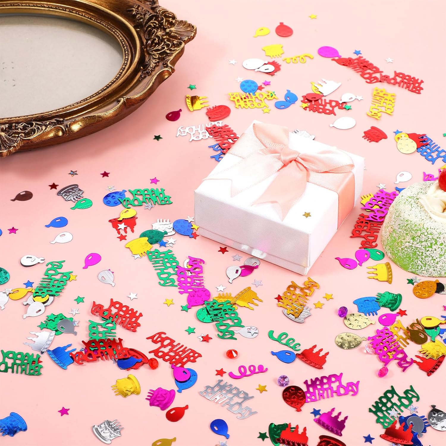 1500 Pcs Happy Birthday Glitter Confetti, Rainbow Foil Confetti Ready Decorations, Party Table Multicolor Cake Glitter Balloons For Birthday Party, Baby Shower Crafting