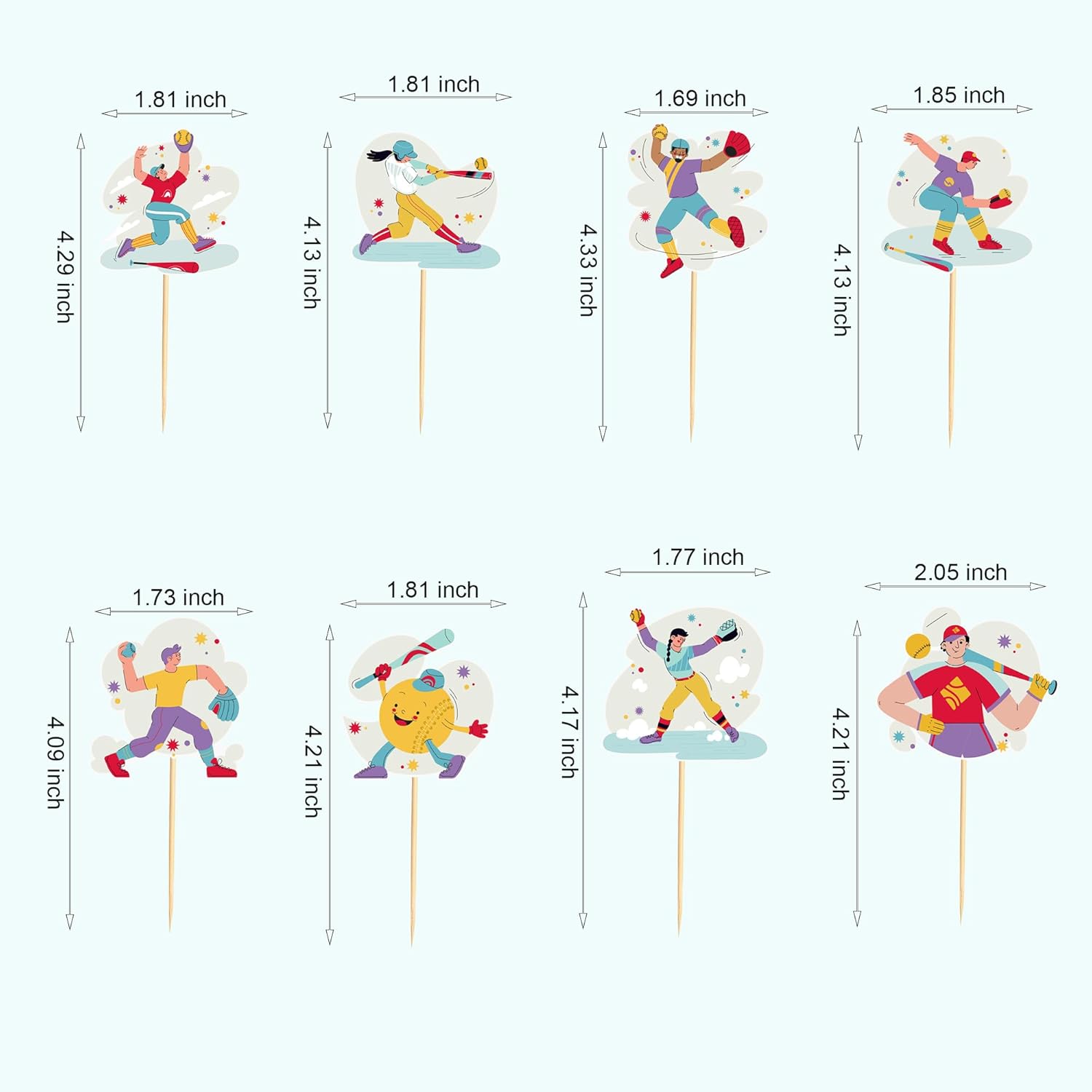 24pcs Baseball Cupcake Toppers Sports Game Baseball Players Cupcake Picks for Sports Baseball Theme Baby Shower Kids Boys Girls Birthday Party Cake Decorations Supplies