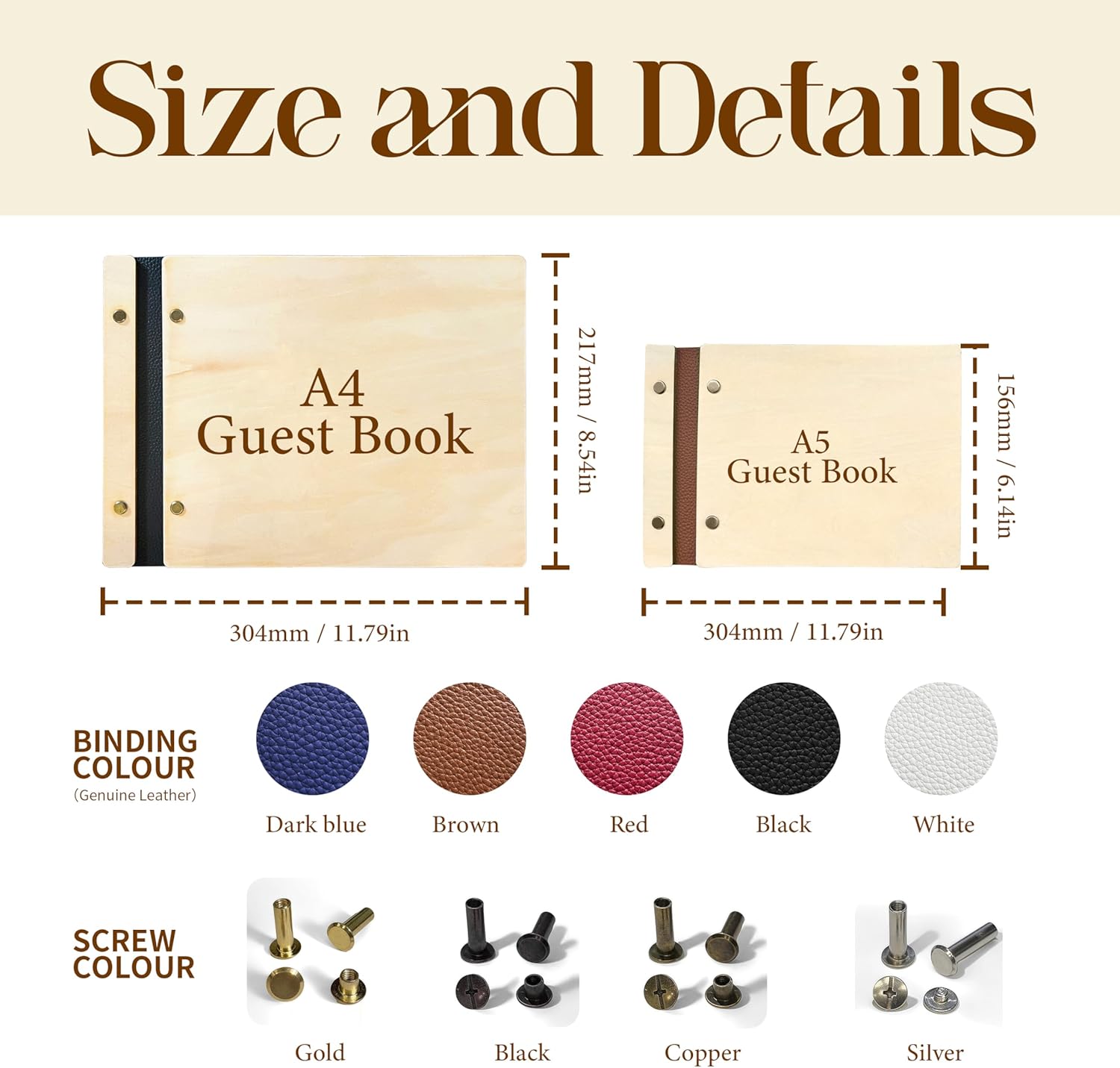 - Beautiful & High-Quality Cover - The Wooden Guestbook Cover is made of high quality genuine leather which can be freely matched with customization options. With a wood cover that is 3.5β4 millimetres thick and sturdy metal spiral binding, this sign-in book provides a flat and secure writing surface, ensuring an effortless experience for all your guests.