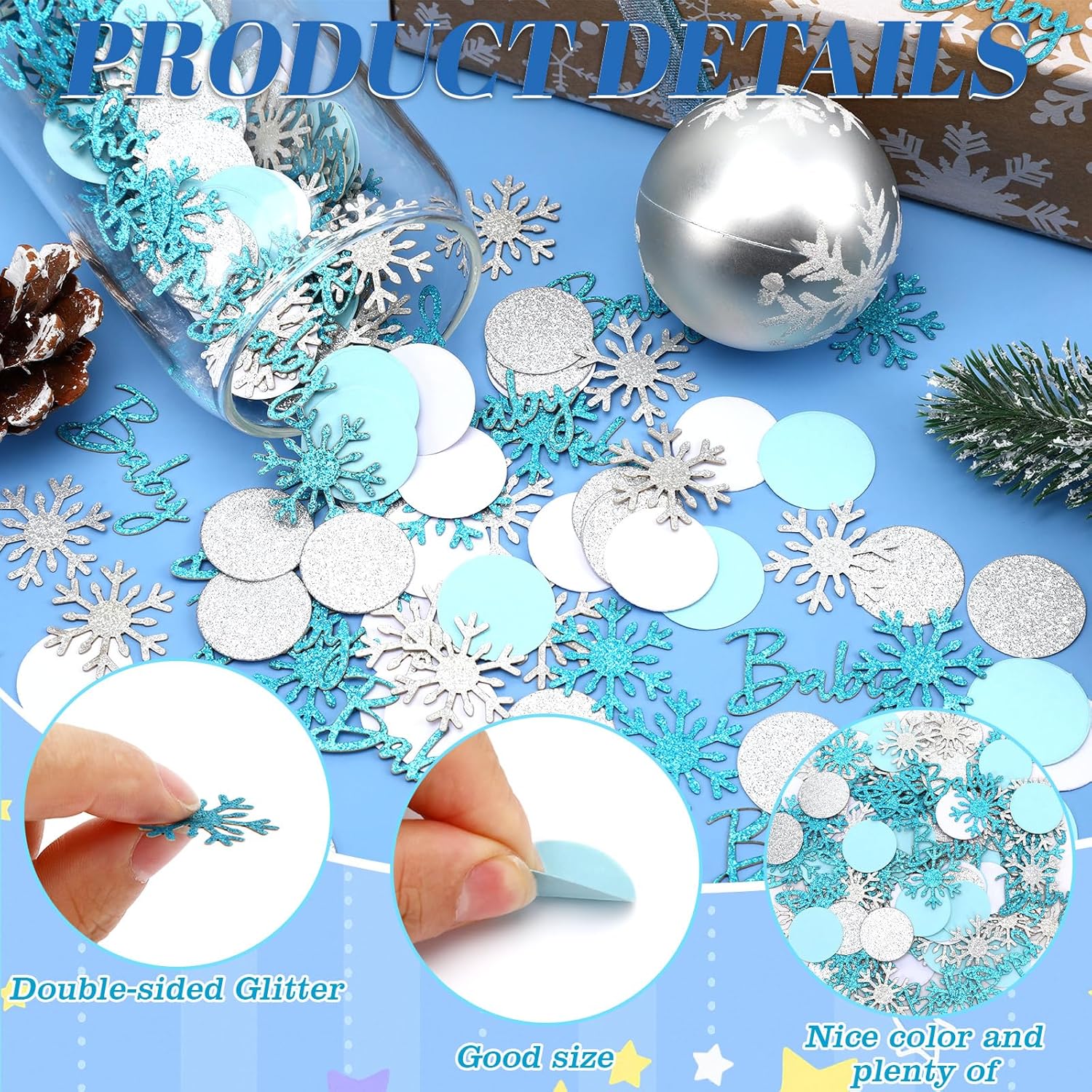 - Winter Shower Confetti: Baby shower confetti, with a total of 200 pieces blue baby shower confetti. Contains a variety of styles, such as snowflake, round, and the word "Baby". Different styles is reasonably matched, which can fully meet the needs of baby shower scene layout, easily complete the decoration task, winter baby shower decorations help you create a beautiful winter desktop decoration