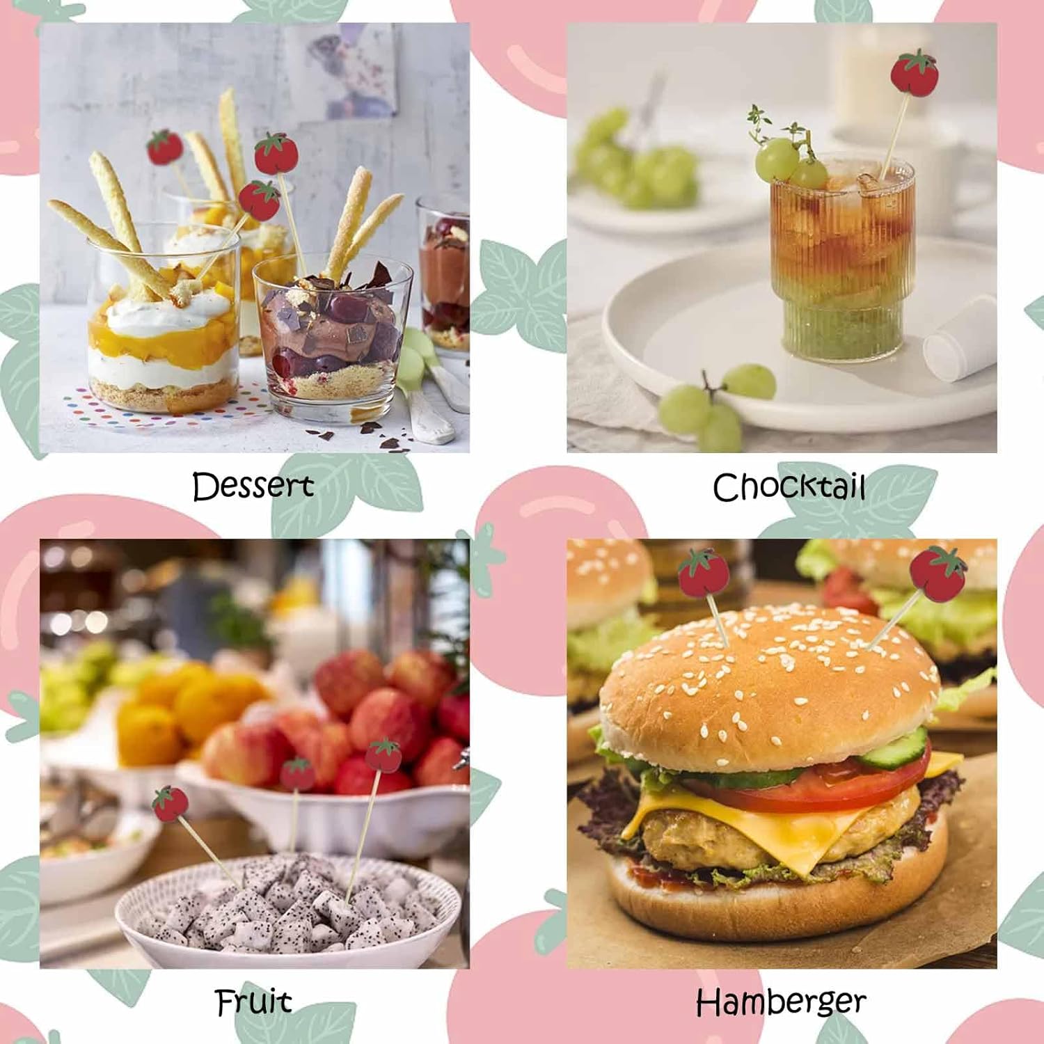 - [Halloween theme design] The decorative cocktail picks feature a tomato at the end, green colors cater to the Halloween well and add more sweet touch.