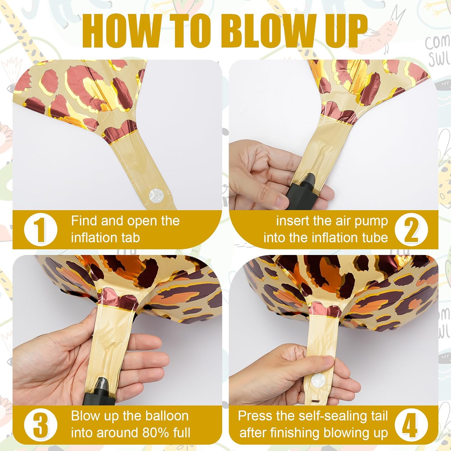 - Easy to Use: Use an electric pump to inflate the metallic pink and gold cheetah balloon until the creases disappear, achieving a round and smooth effect. Stop inflating as soon as the creases disappear.