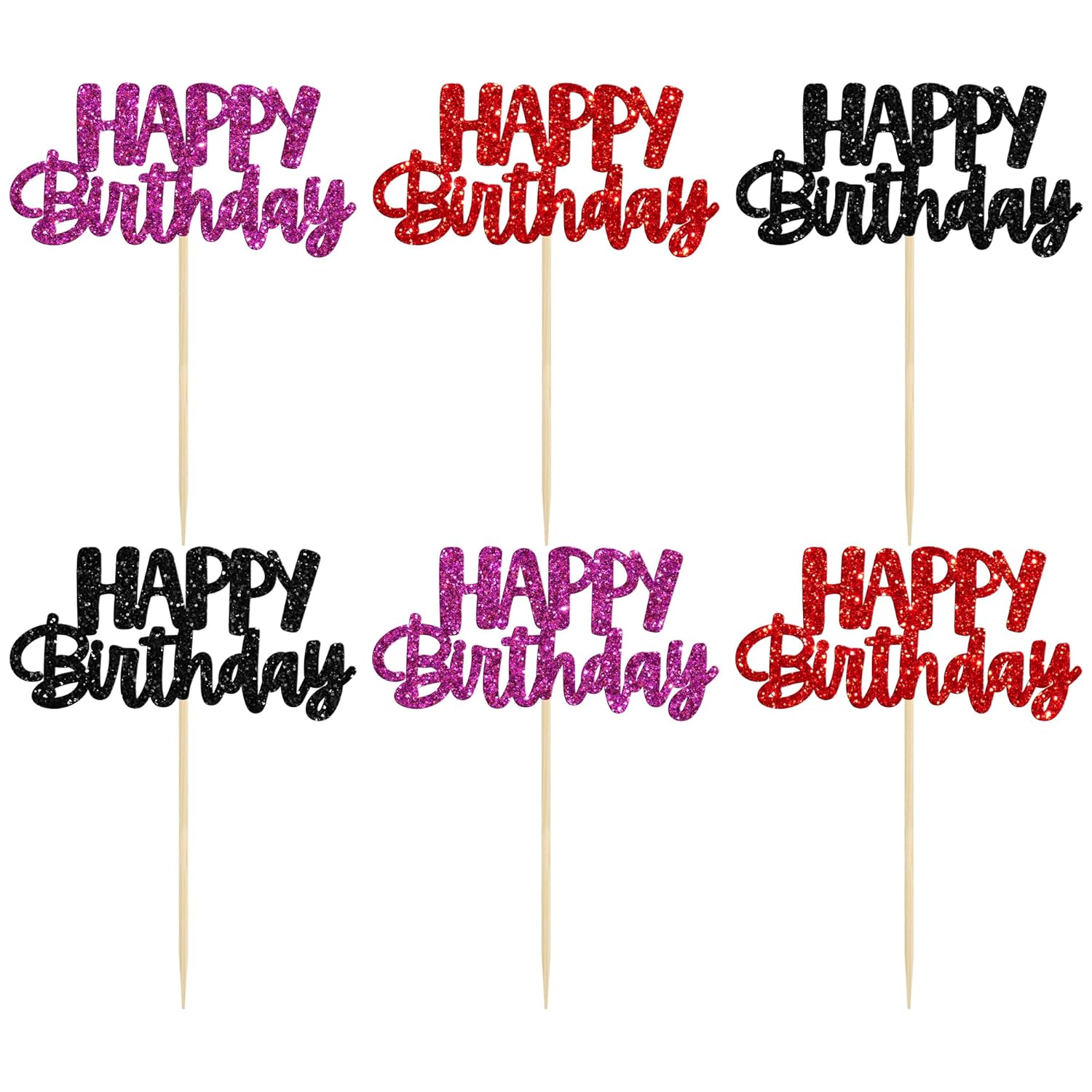 - ๐ Premium Material: These glitter happy birthday cupcake Toppers are made of high quality paper and food-grade toothpick, very safe to put them on cakes, cupcakes, ice cream, fruits, pie, dessert, cheese or any dish and food appetizer you want to decorate.