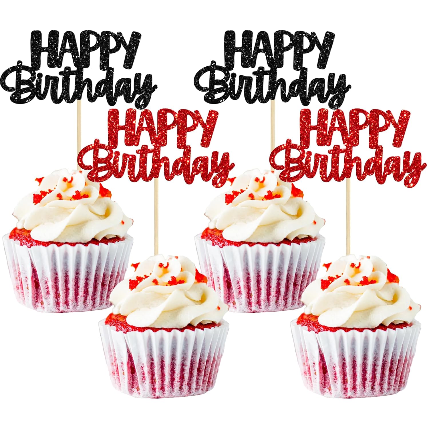 - ๐ Premium Material: These glitter happy birthday cupcake Toppers are made of high quality paper and food-grade toothpick, very safe to put them on cakes, cupcakes, ice cream, fruits, pie, dessert, cheese or any dish and food appetizer you want to decorate.