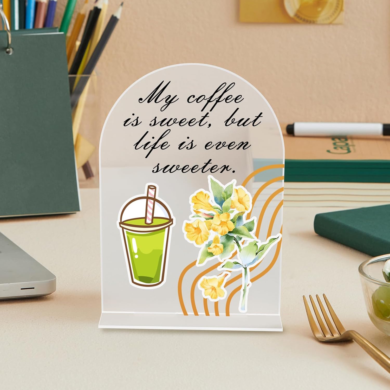 - Elegant Arch Design & Smooth Edges – Featuring a graceful arched shape with laser-polished edges for a sleek, refined look that adds a touch of sophistication to any setting. Simply insert the acrylic plate into the base to complete the assembl
