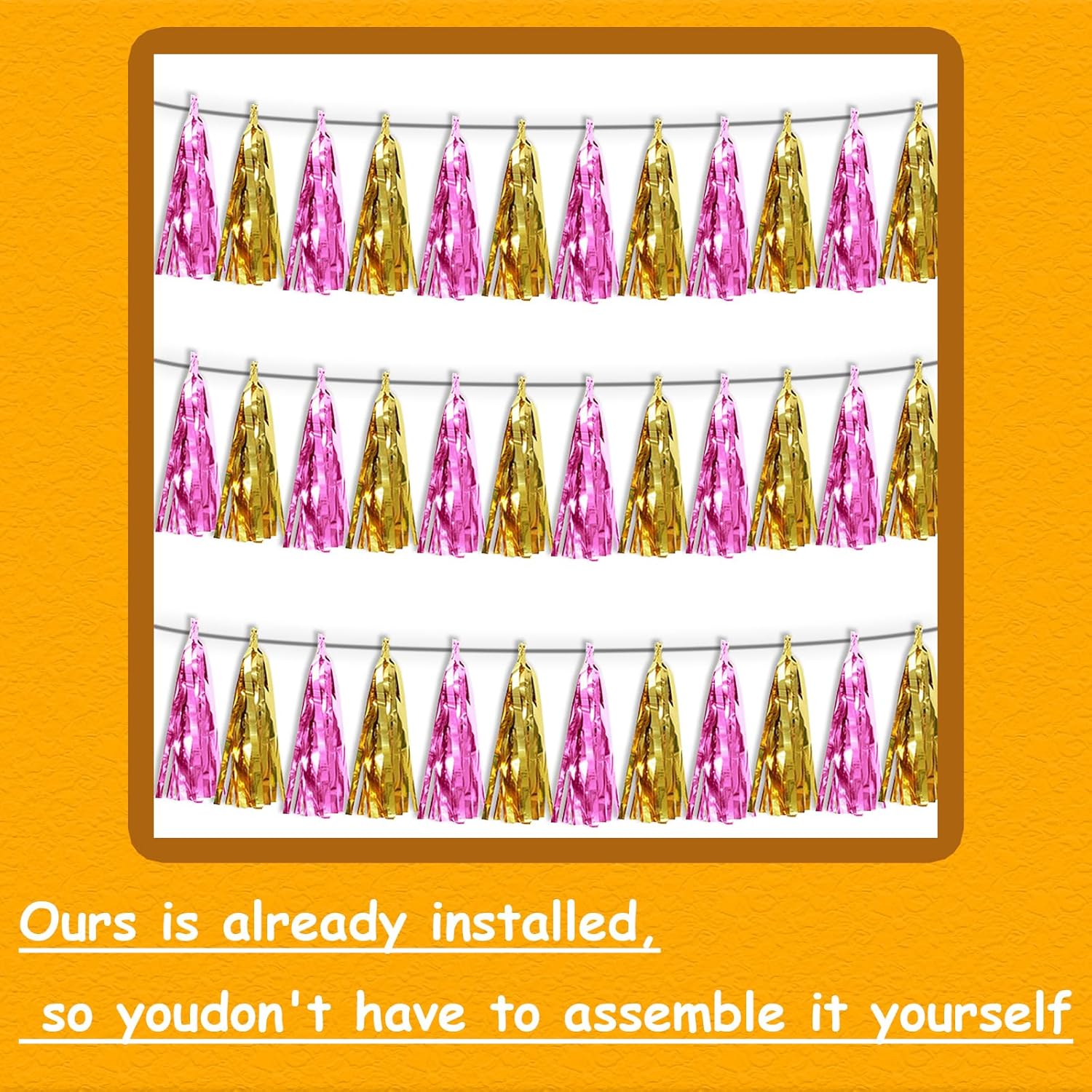 - 【Package Includes】The total length of the gold pink birthday tassels banner is 30 feet, divided into 3 strips, each 10 feet long. Each banner contains 15 tassels, and each tassel measures 14 inches, for birthday decorations many occasions uitable for Patriotic display, Homecoming Float, Christmas Float, ecorative metal trailers, graduation floats etc