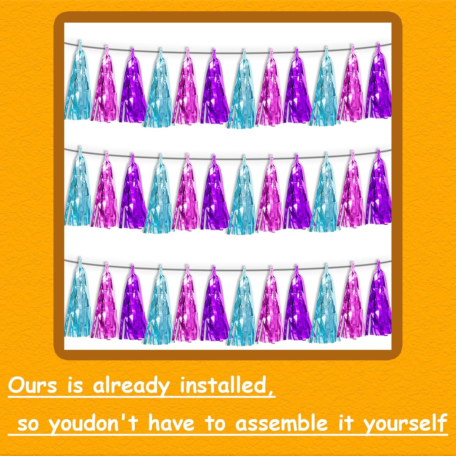 - 【Multiple Colors】Pair with metallic foil fringe garland of different colors to achieve the color combination you want. Show off your creativity by pairing this gold foil wall hanging banner with other garland in different colors to fulfill your dream of creating the perfect party scene.