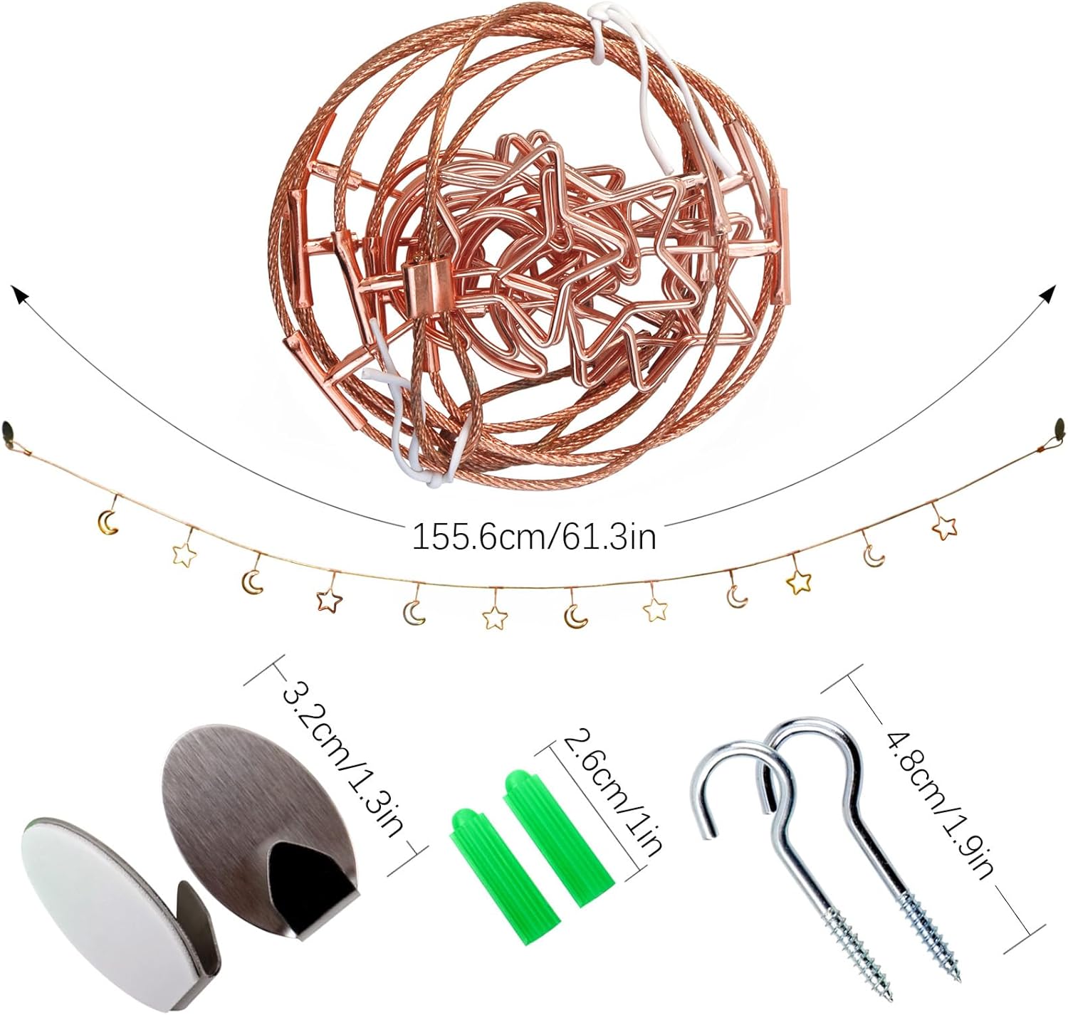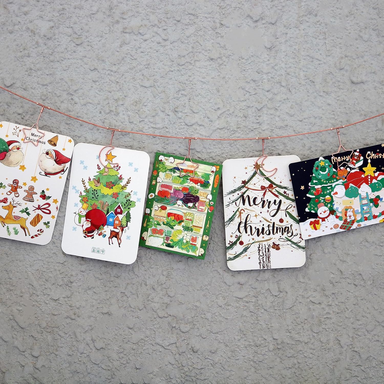 Chain Photo Clip Wall-Mounted Picture Holder Metal Photo String with 12 Clips for Hanging Painting Family Photos Artworks Home Decor(Fixed) (Rose Gold-Star and Moon)