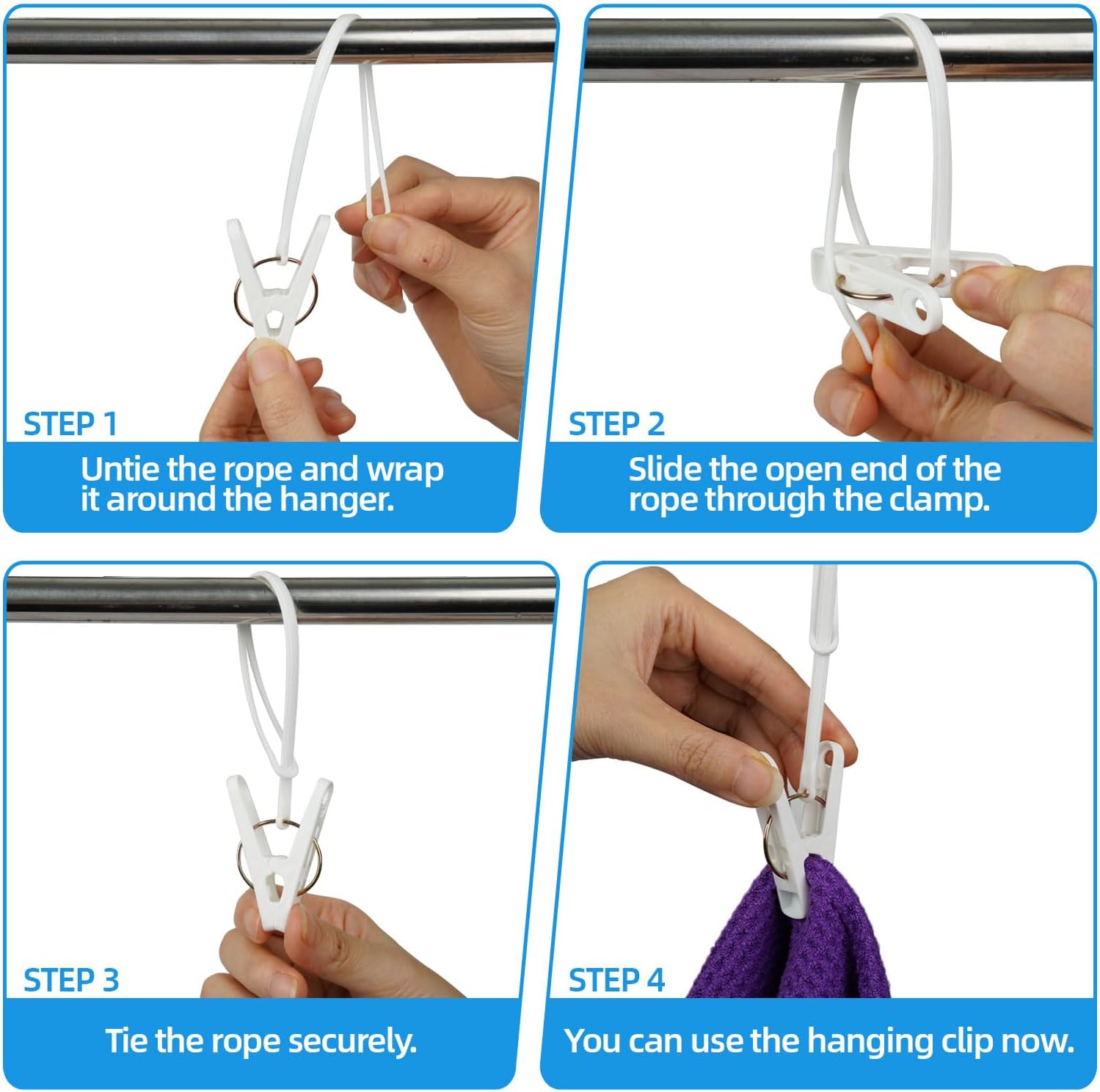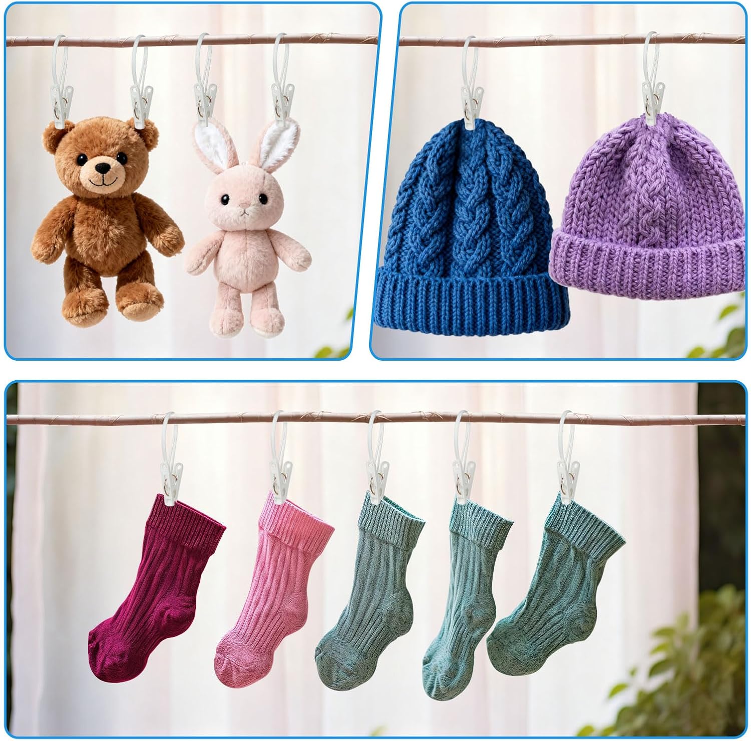 - Convenient&Windproof:Clothes clips with plastic rope can be directly fixed on the clothes drying line,making setup simple and hassle-free.Even on windy days, you can trust that your clothes will stay securely in place with our clothing pins.