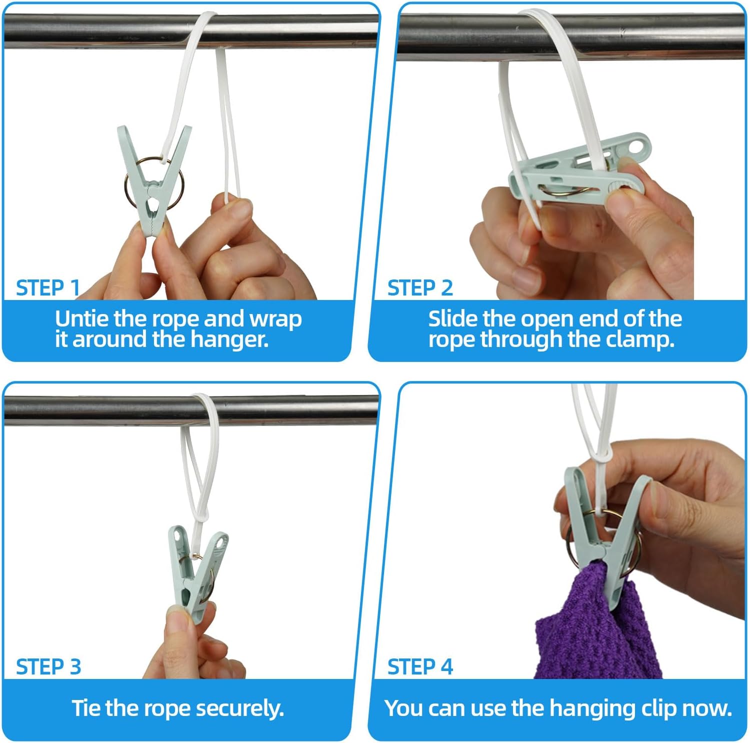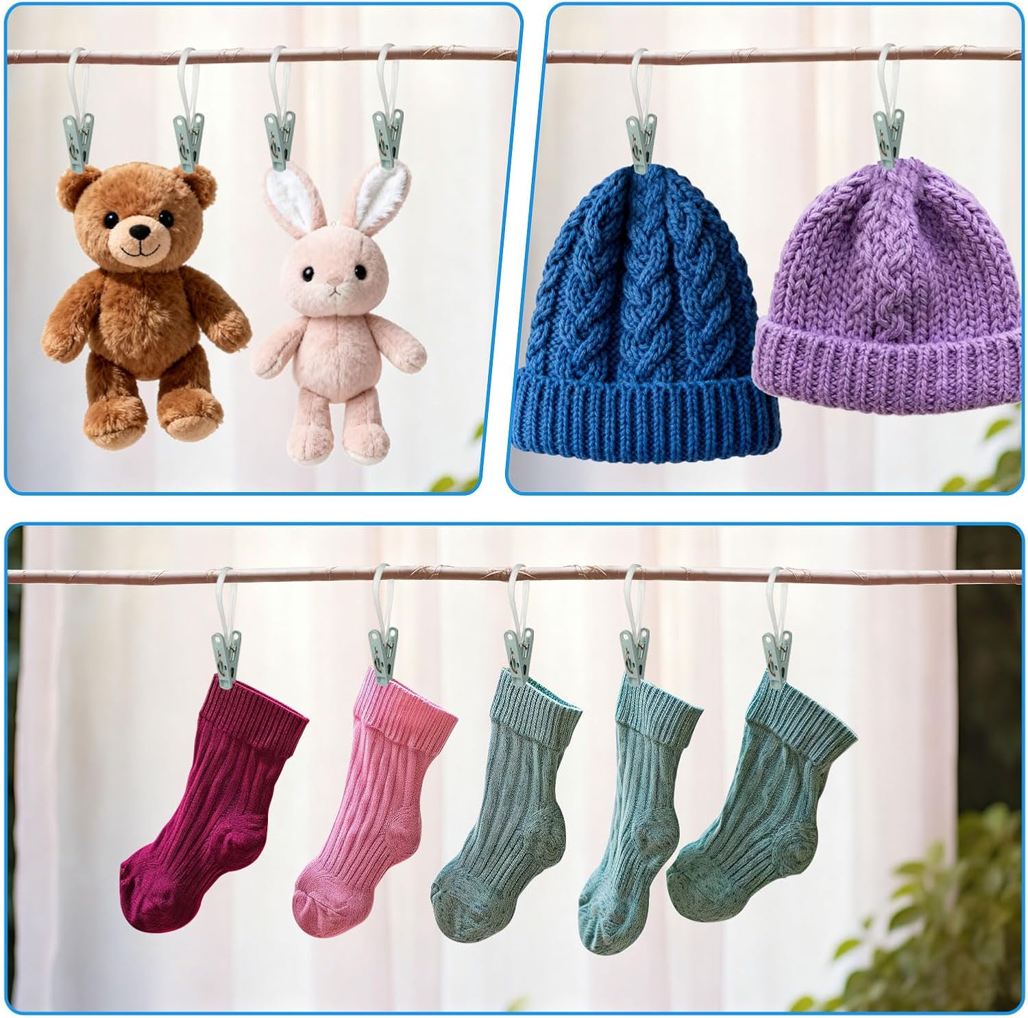 - Convenient&Windproof:Clothes clips with plastic rope can be directly fixed on the clothes drying line,making setup simple and hassle-free.Even on windy days, you can trust that your clothes will stay securely in place with our clothing pins.