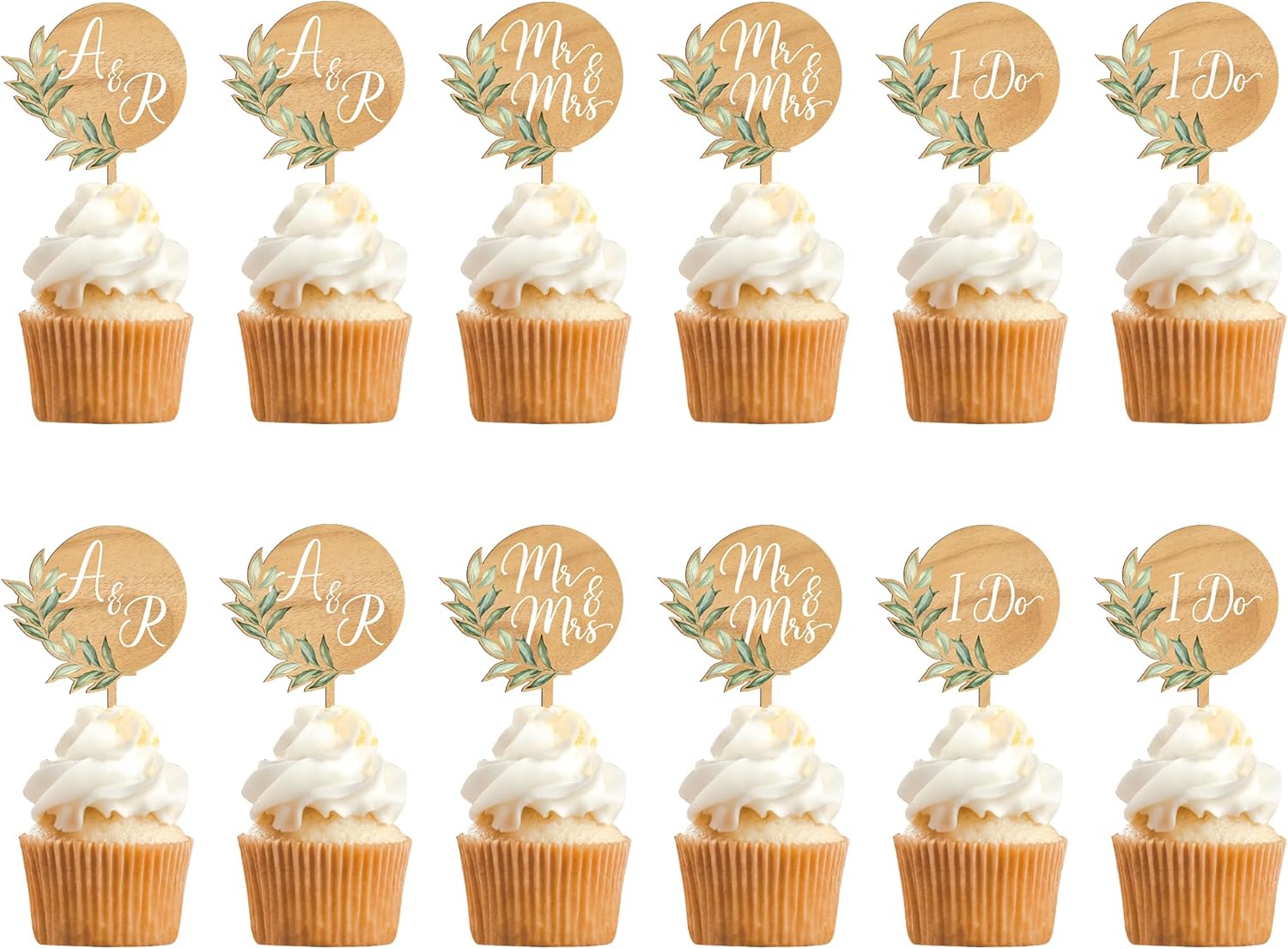 Custom Wedding Cupcake Toppers Personalized Cake Cupcake Decorations in Wood (12 PCS)
