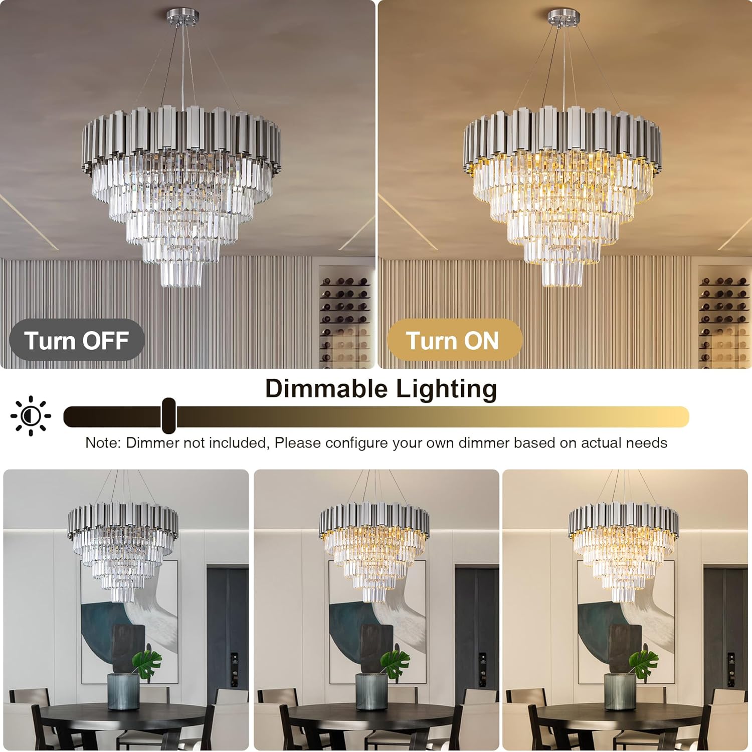 - 【Compatible Dimmable E12 Bulbs】This silver chandelier requires 9 × E12 LED bulbs. For a cozy and inviting atmosphere, we recommend 3000K warm white bulbs. Or you can choose preferred color temperatures to match your style and home décor. Fully dimmable when paired with a compatible dimmer switch.( bulbs and dimmer not included)
