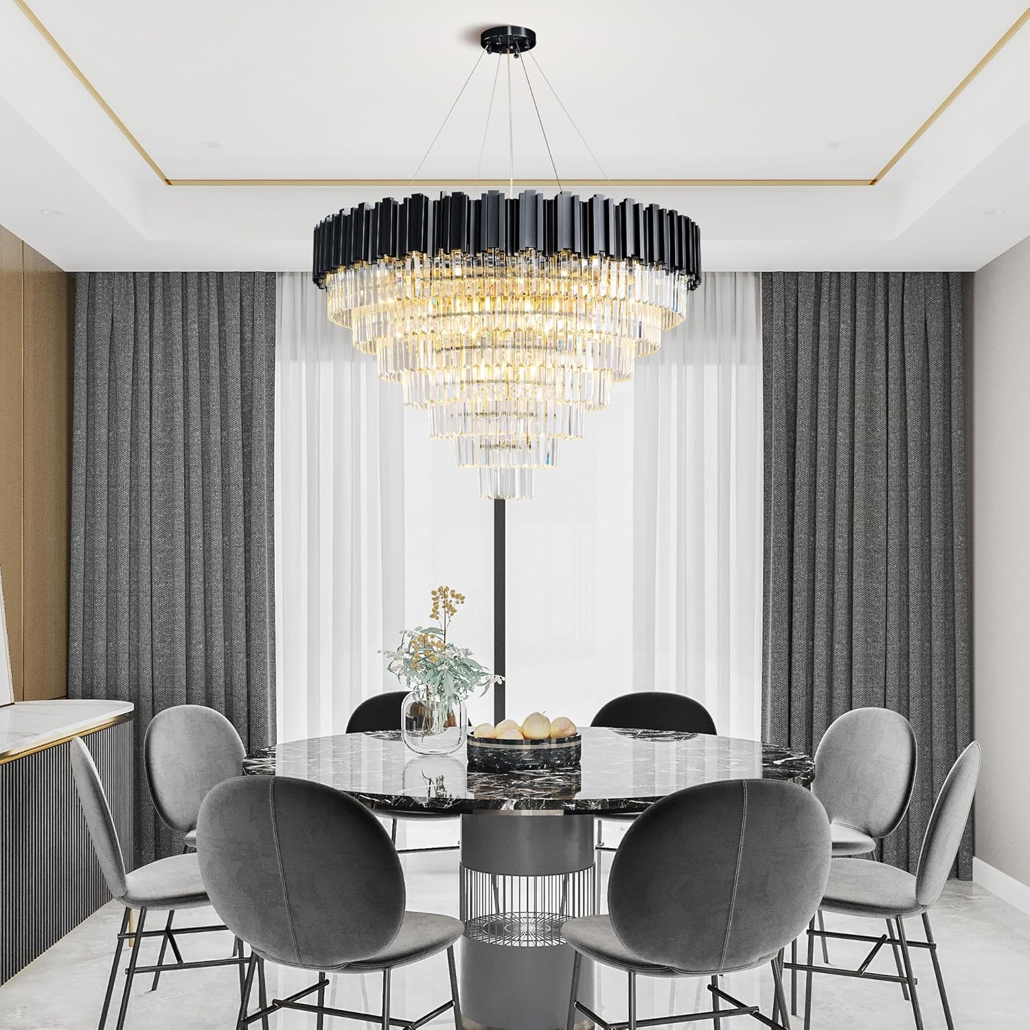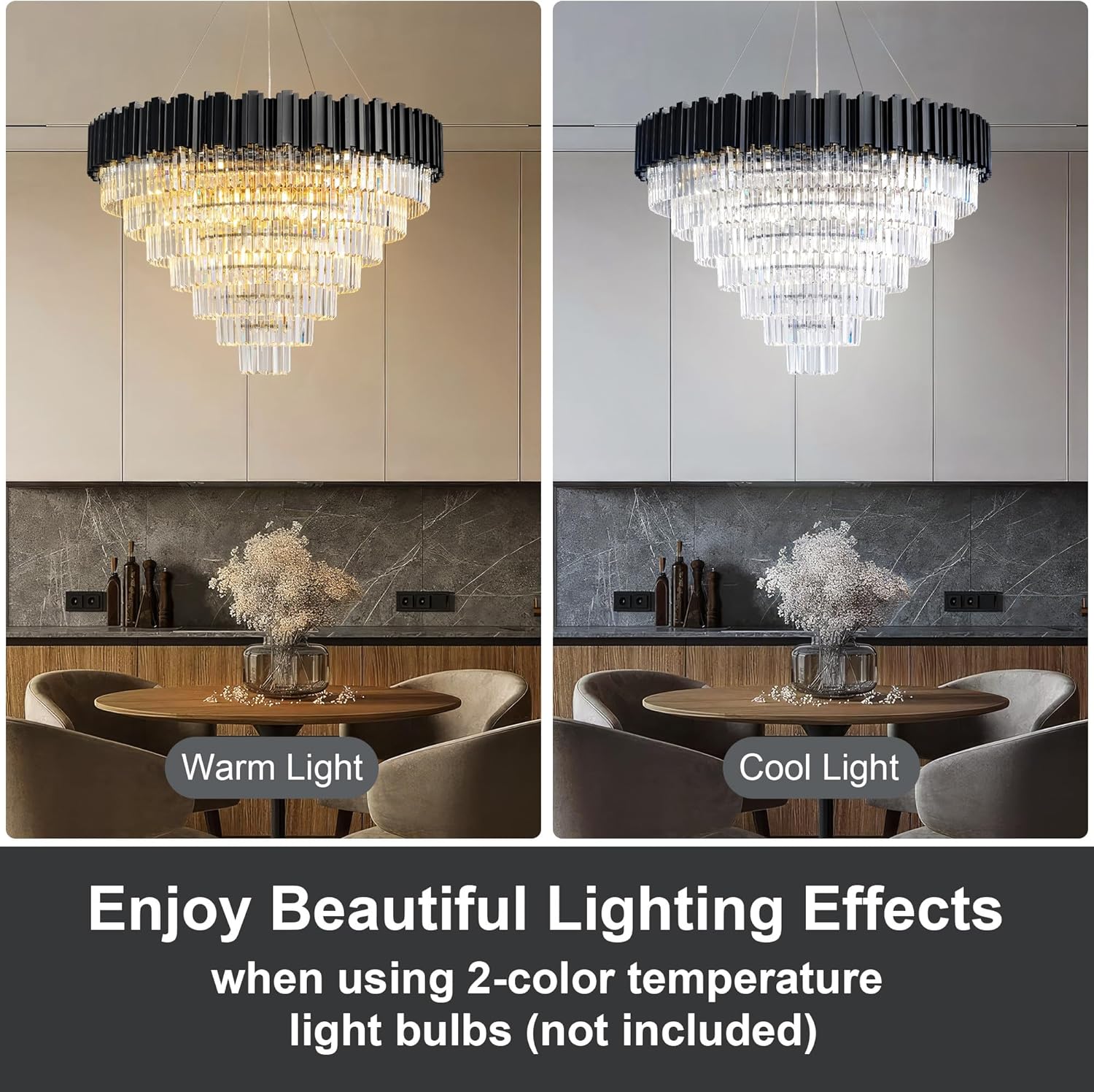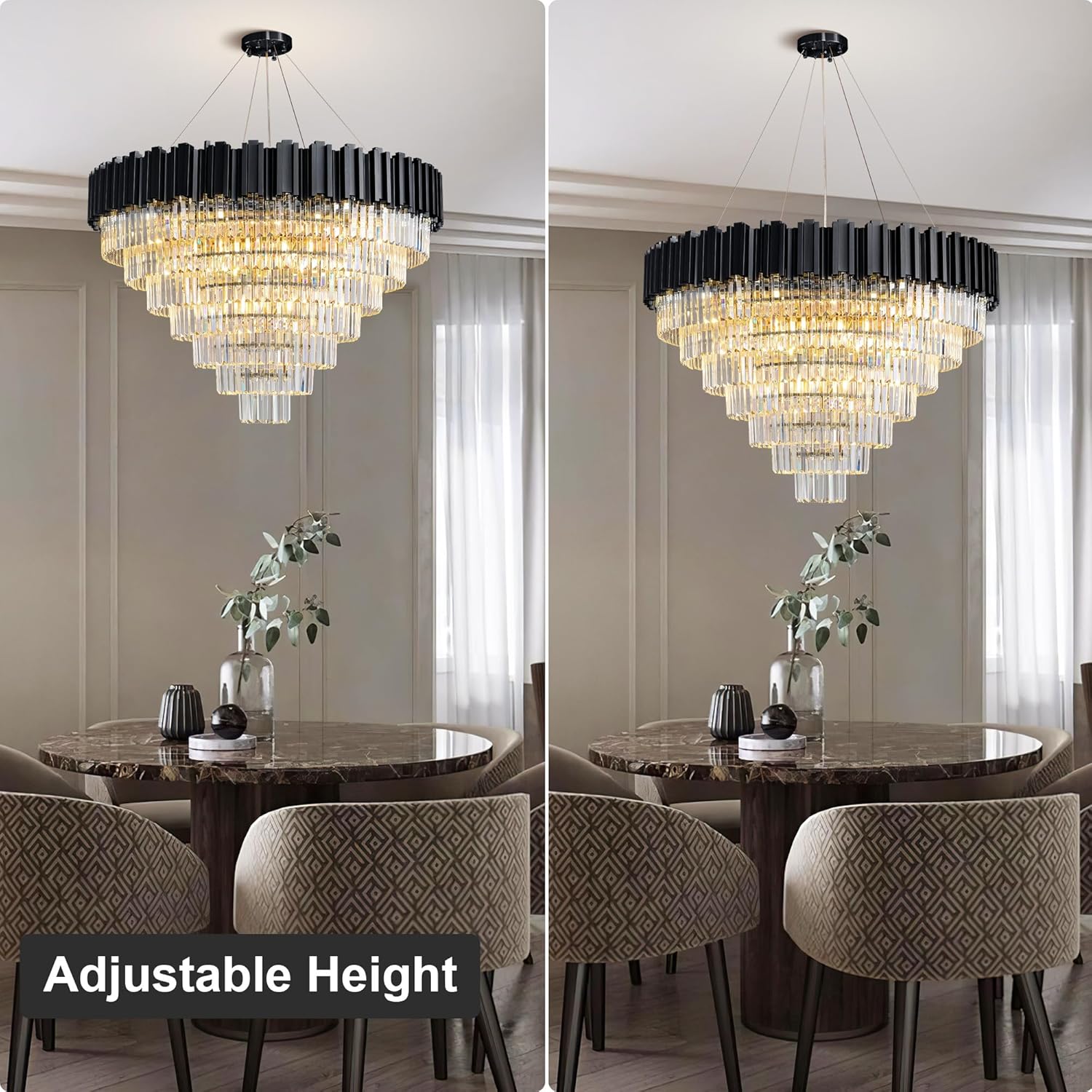 - 【Luxury Crystal Chandelier】This modern chandelier is crafted with premium matte black frame and 100% top K9 transparent crystals that exude a diamond-like brilliance. With 7 tiers and 450 sparkling crystals adds brilliance and sophistication, each crystal refracts light beautifully, creating a dazzling, luxurious atmosphere for your home.