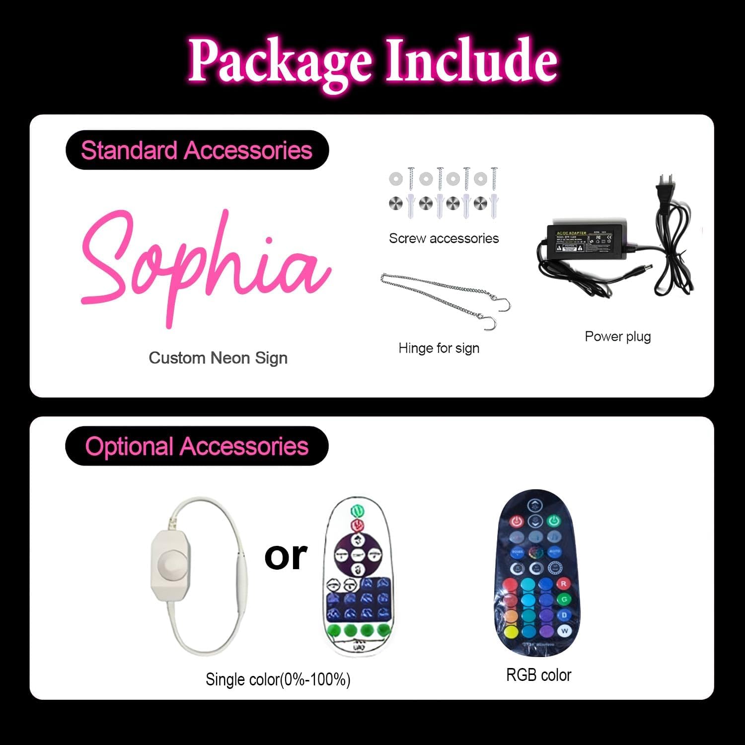 - đź’ˇInstant Ambiance, Easy Setup: Transform any room in minutes. Your personalized neon light name sign arrives with a simple plug-and-play setup and all necessary mounting hardware. Just hang it up, plug it in, and instantly enjoy the vibrant, energy-efficient LED glow that elevates your home's atmosphere.