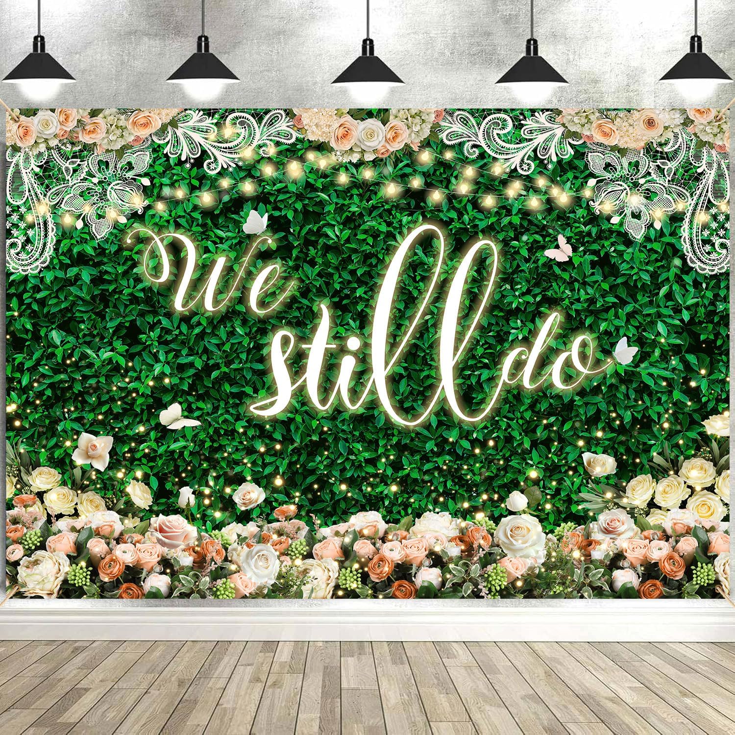 We Still Do Backdrop Green Leaves Lace Wedding Anniversary Photography Background Engagement Vow Renewal Bachelorette Party Decoration Banner Photo Booth Studio Props 9x6ft FU064YL